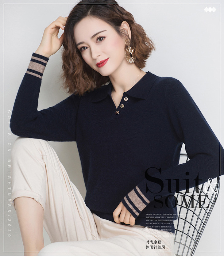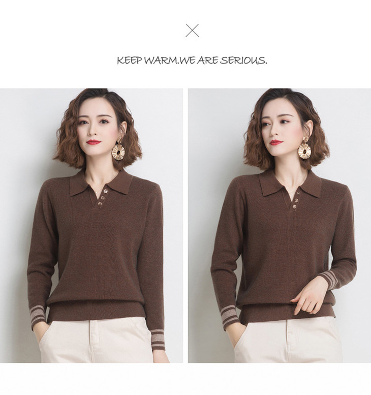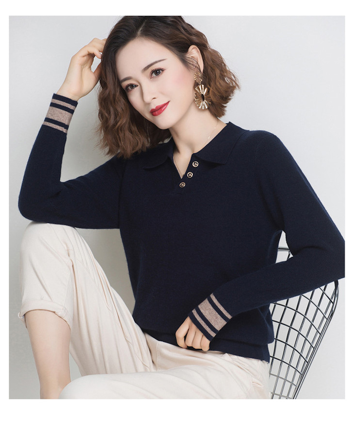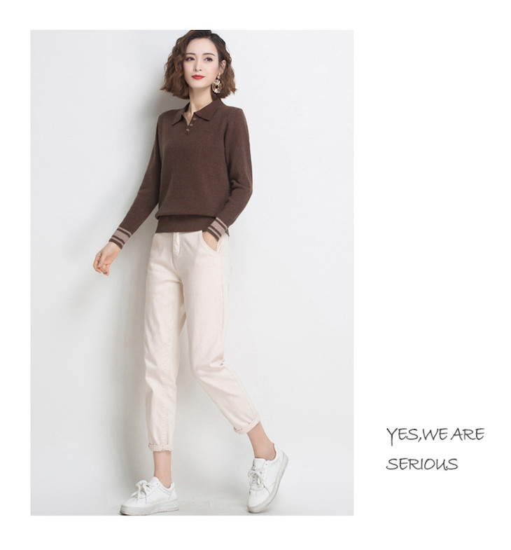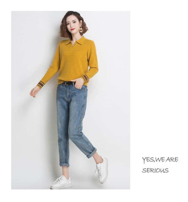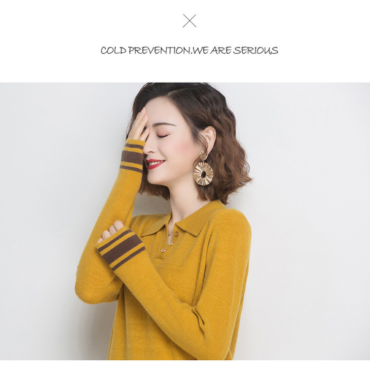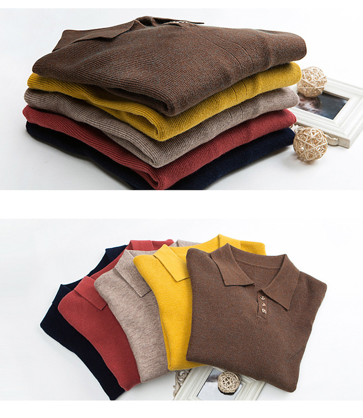 YHSS629637新款韩版时尚气质宽松百搭翻领长袖针织打底衫