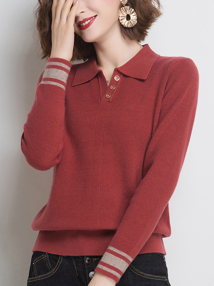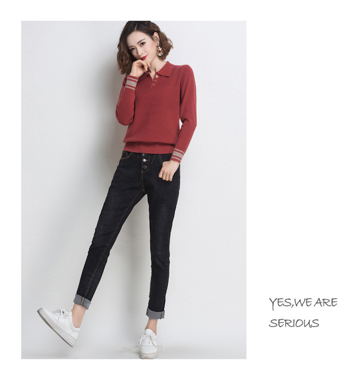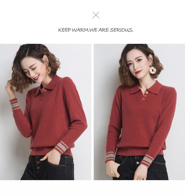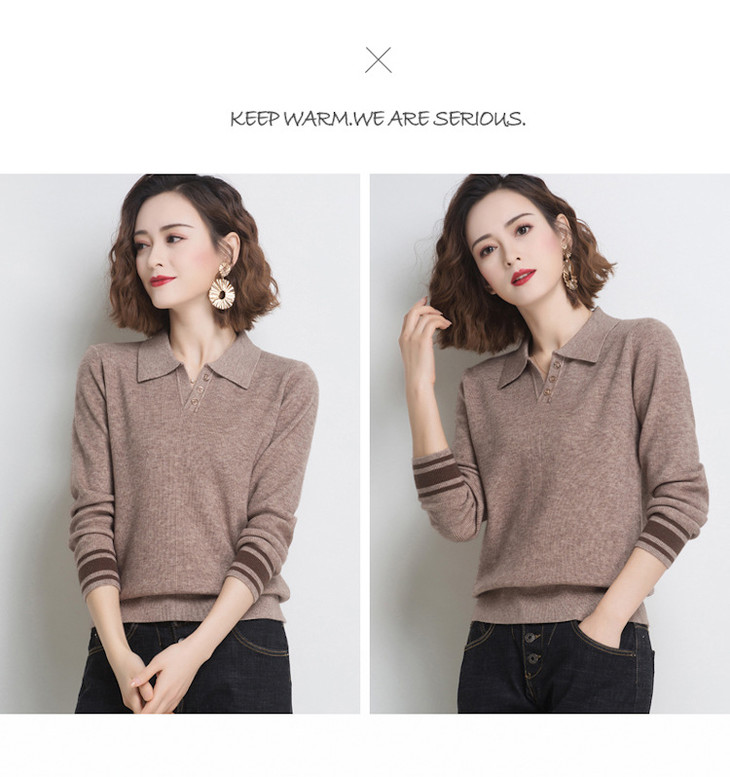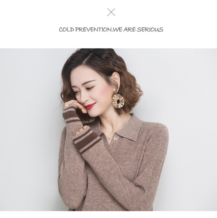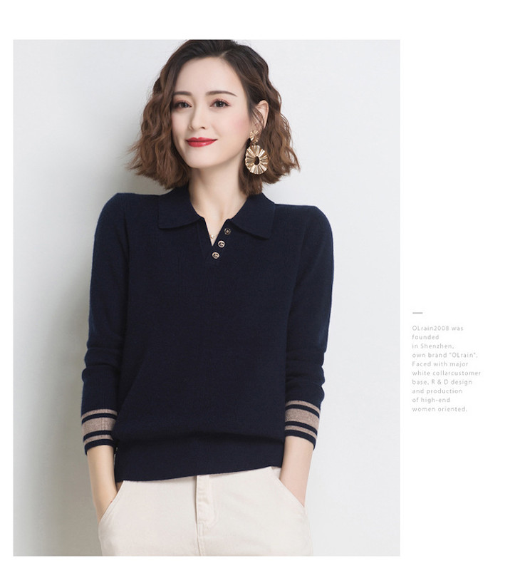 YHSS629637新款韩版时尚气质宽松百搭翻领长袖针织打底衫