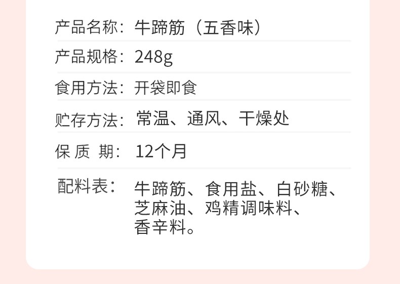 新疆八大怪牛蹄筋(五香味)/1包(约12小包,共248g)生产日期:25年1月