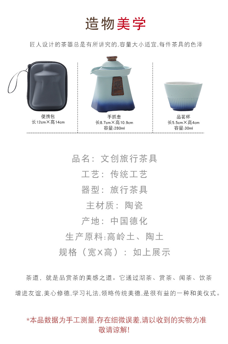 【国潮文创茶具套装,宫廷风设计!】国潮故宫文创 宫廷风旅行茶具小套装 快客杯便携式 户外商务伴手礼品-QQ