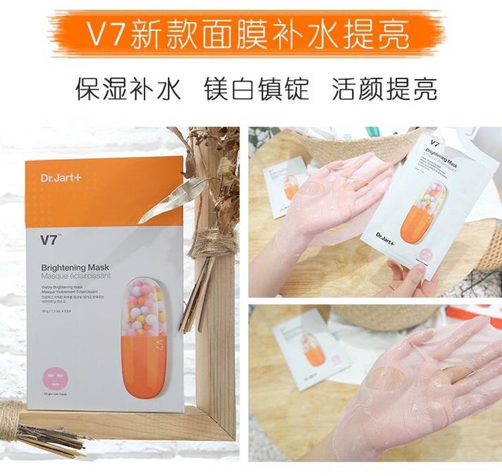 新款Dr.jart 蒂佳婷V7药丸面膜5片👍这款面膜是2019年新款💗哦,这个系列的卖点是富含💁七种维他命成分,所有叫V7系列。能让肌肤从里到外的提亮👅, 淡化黑色素,活颜提亮,扫除暗哑无光的肌肤,用完它皮肤滑滑嫩嫩的😇。它的面膜纸是果冻质地哦,并且是粉红色滴🎀,少女心~特别服帖,冰冰凉凉的🌬
