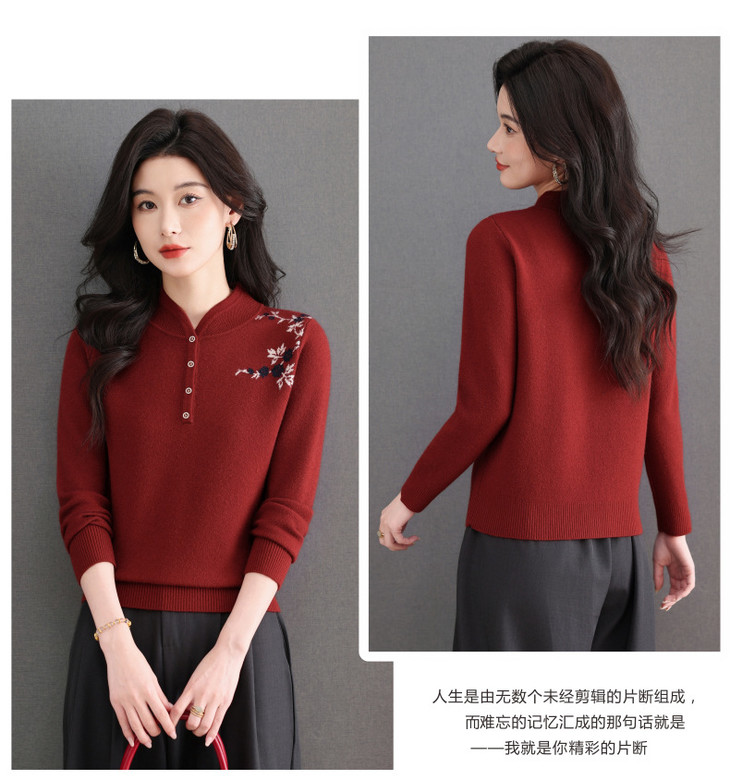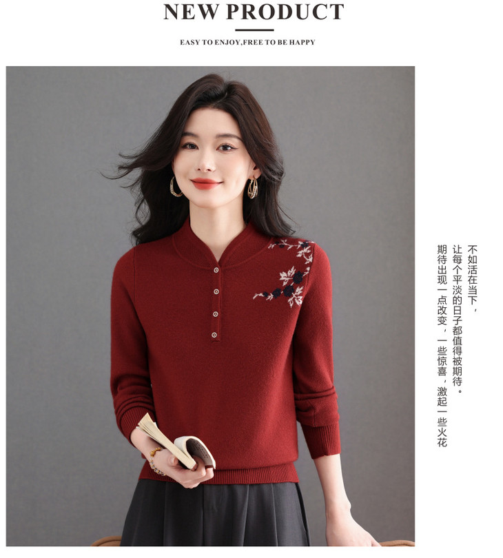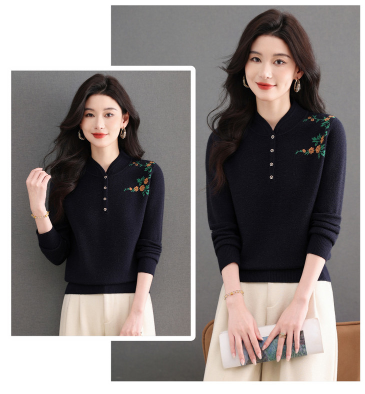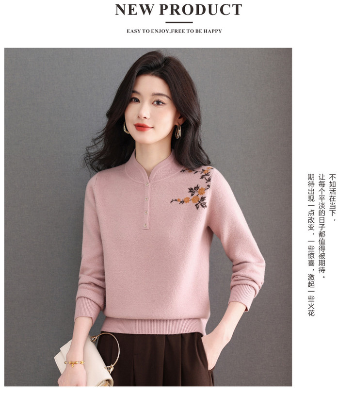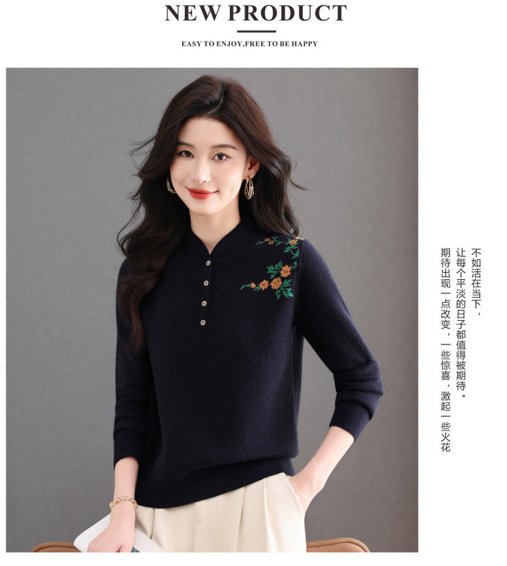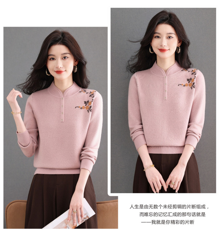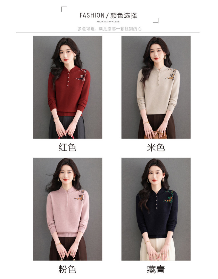 新中式立领毛衣今年流行漂亮上衣,内搭宽松洋气打底衫CC-101-92596