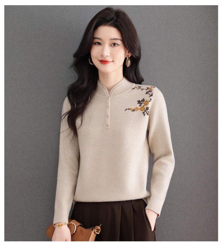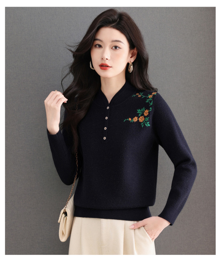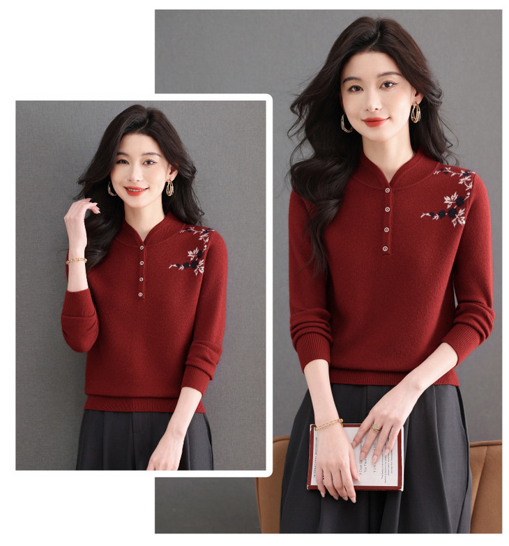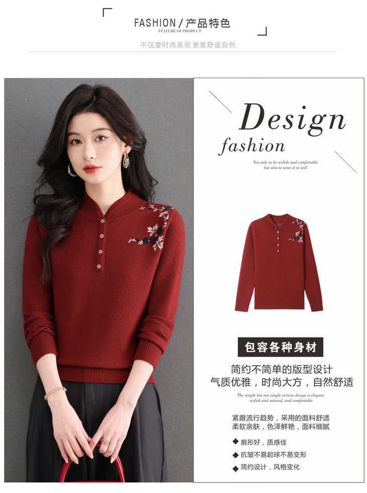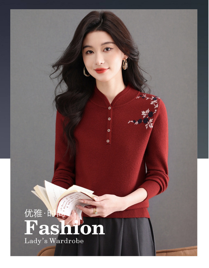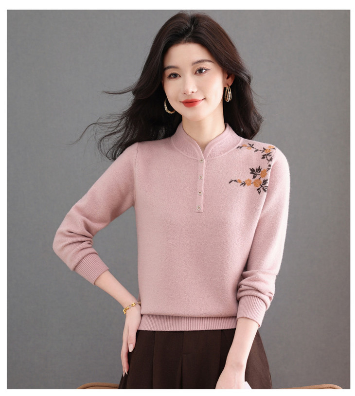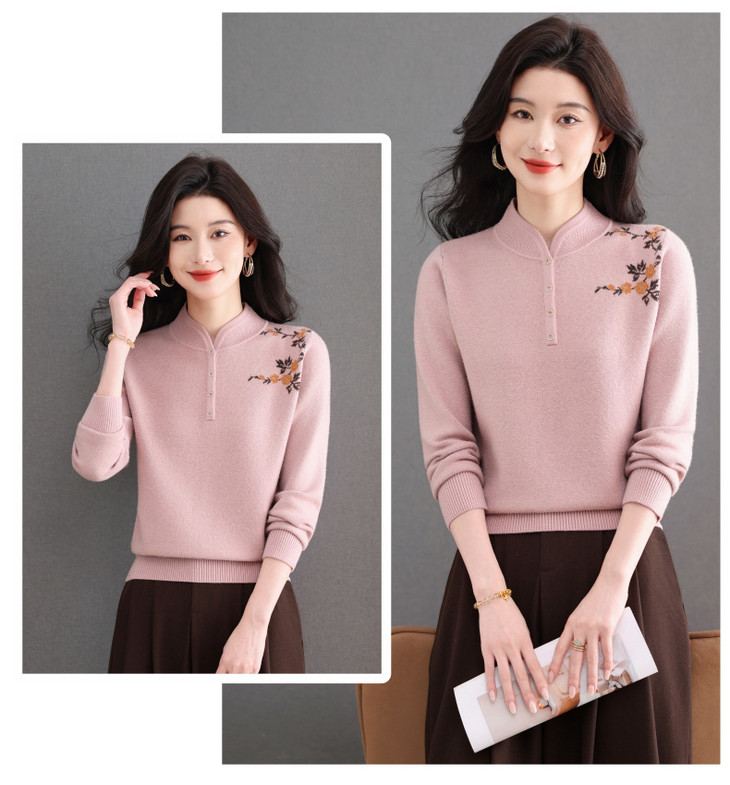 新中式立领毛衣今年流行漂亮上衣,内搭宽松洋气打底衫CC-101-92596