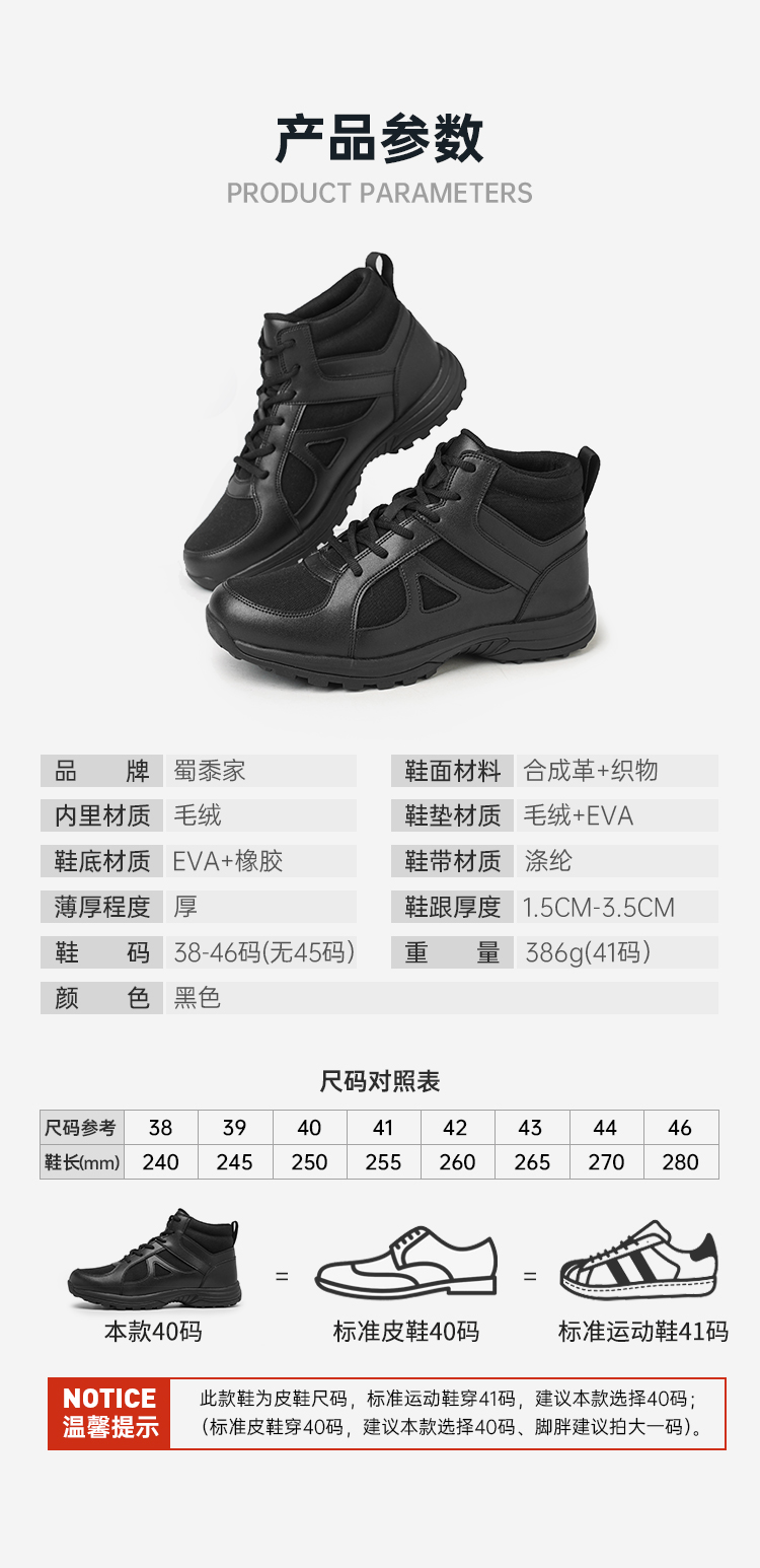 【加绒款中帮体能训练跑鞋】加绒保暖训练跑鞋轻便减震通勤运动鞋