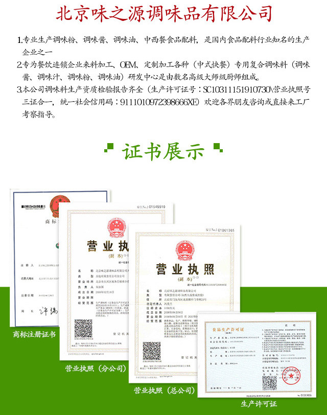 北京味之源调味品有限公司成立于2000年,是一家集研发、生产、销售为一体的现代化专业食品配料企业,是国内知名食品配料行业生产企业之一。公司坐落于美丽的首都-北京,注册资本1058万元,拥有占地2万平米