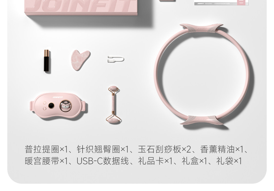 【运动新品】中国JOINFIT优雅塑形礼盒--普拉提圈 暖宫腰带 玉石刮痧板 香薰精油滚珠