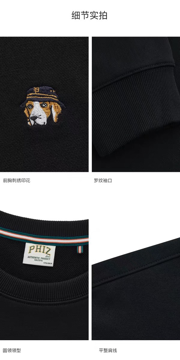 采用客供定织的100%优质纯棉毛圈布,吸湿透气不闷汗,扎实的用料 不是那种薄款,摸起来柔软亲肤 舒适感十足!PHIZ宽松版型裁剪不挑身型,上身利落自在超有型 无束缚还不拖沓,左胸的小狗刺绣将精致优雅完美呈现,设计简约不花里胡哨 反而更显质感!出行逛街搭牛仔或休闲裤 慵懒超松弛,商务通勤搭西装 轻松穿出职场精英的干练沉稳气质,完美适配任何场景~
