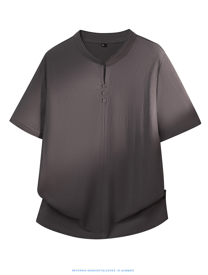 【DPF】大依优型大码男装夏季新中式短袖T恤小V领休闲禅意上衣棉质