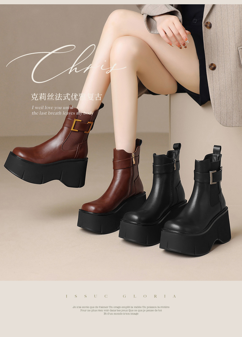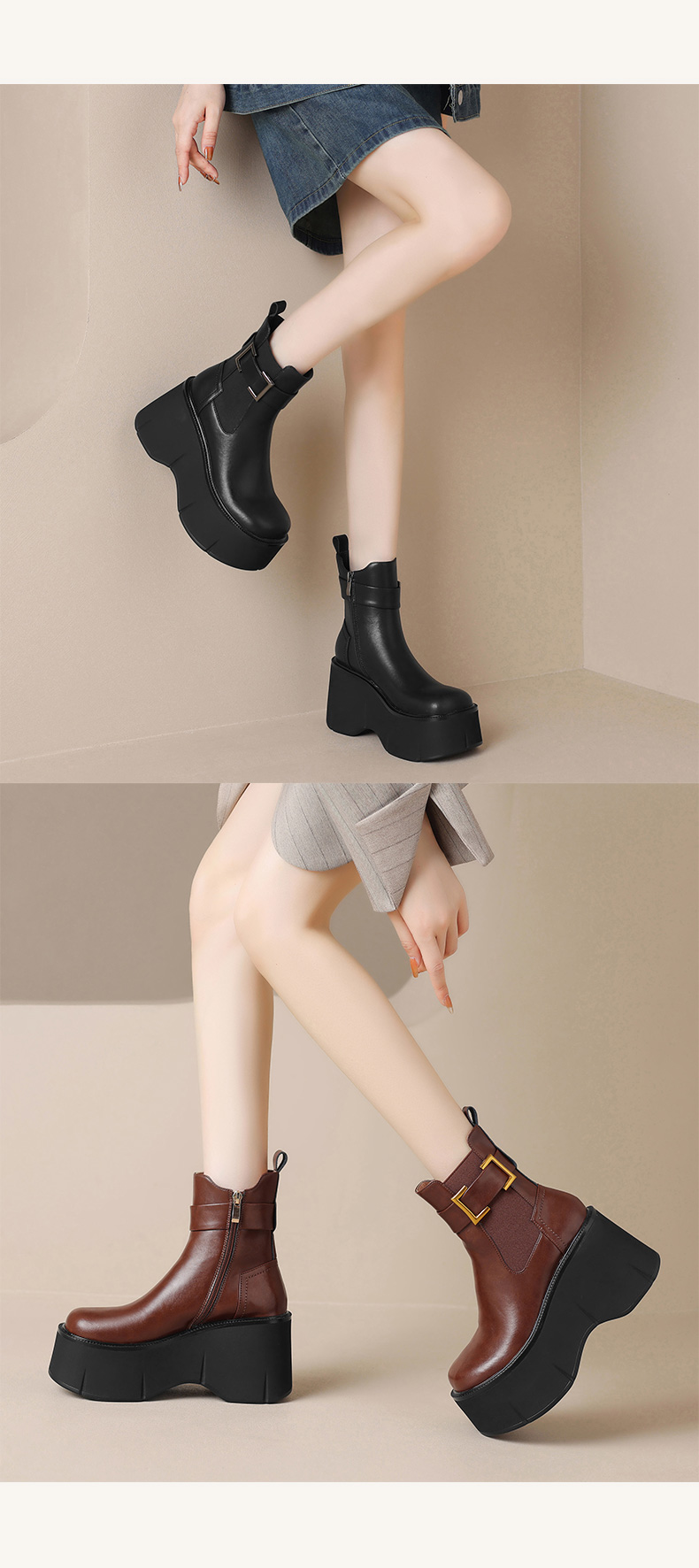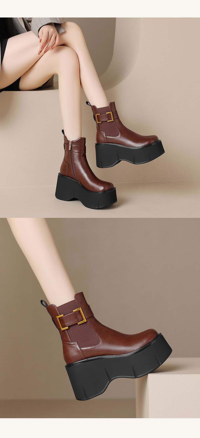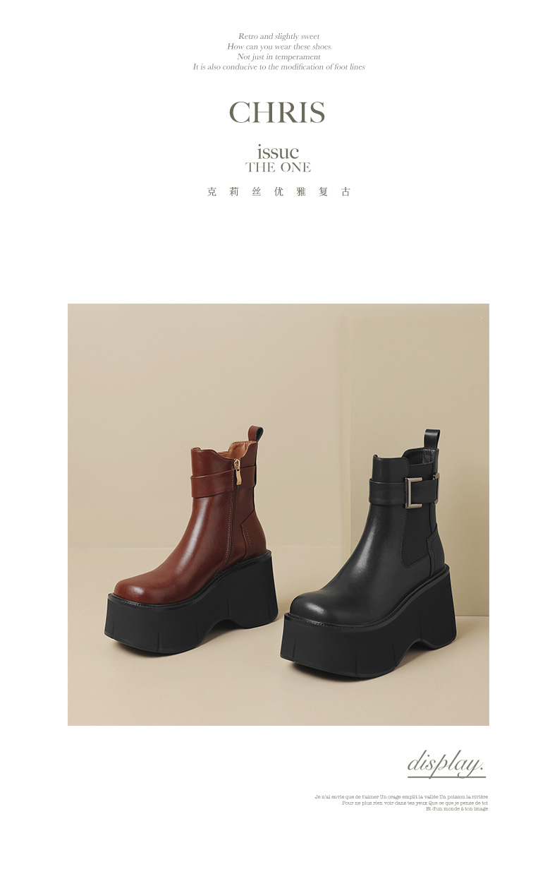大厚底增高10cm,日常战靴厚底百搭真皮短靴ZM-M3117