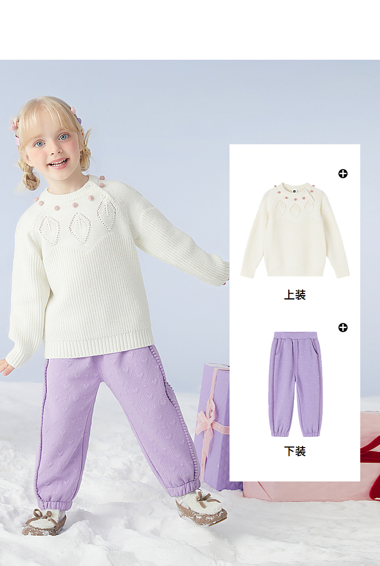 【秒】【专柜同款】MQD童装女童冬季新款加绒针织裤女宝宝加厚裤子潮