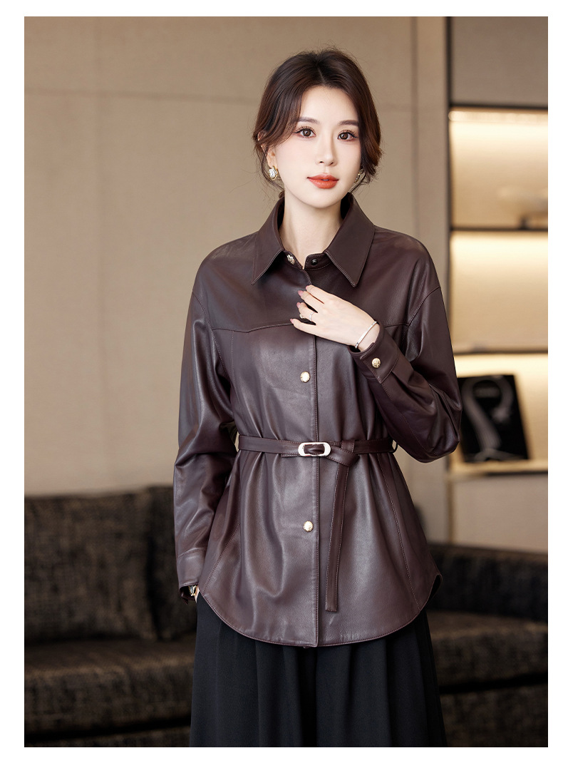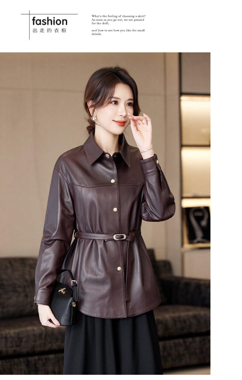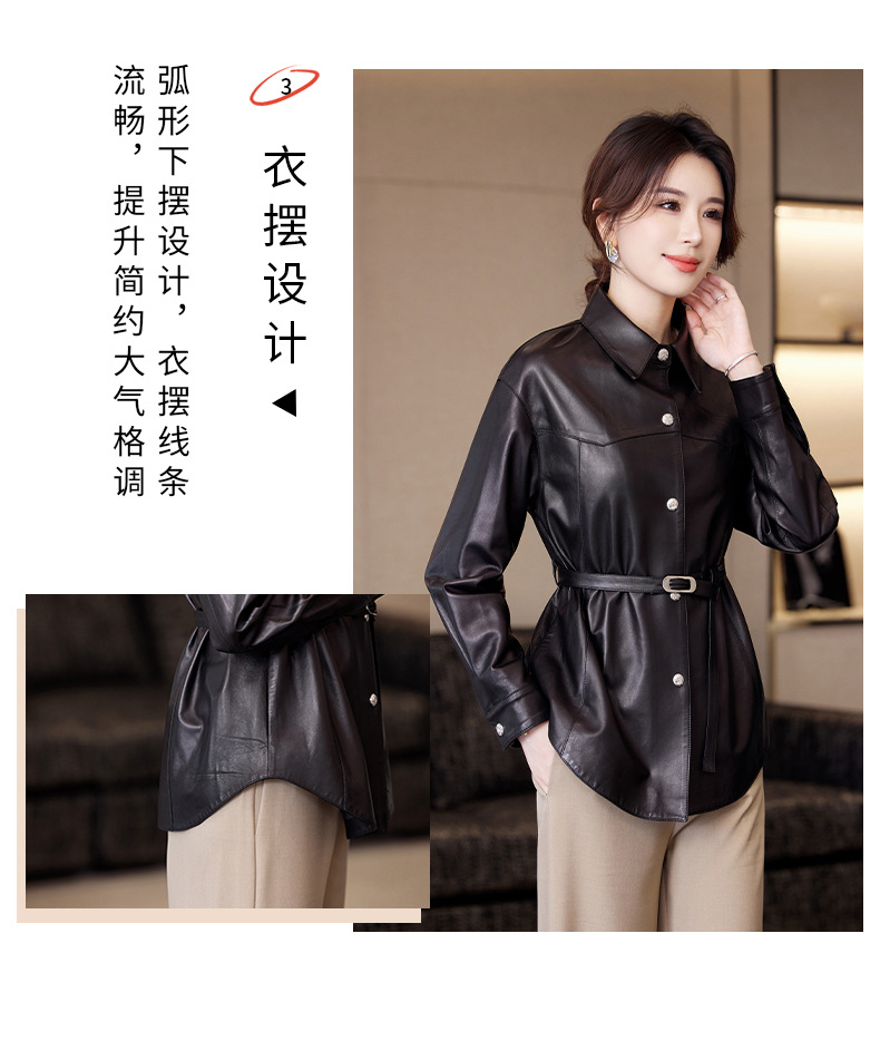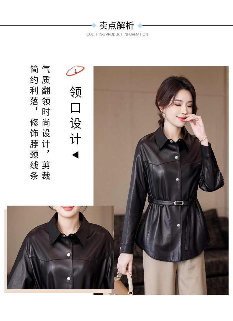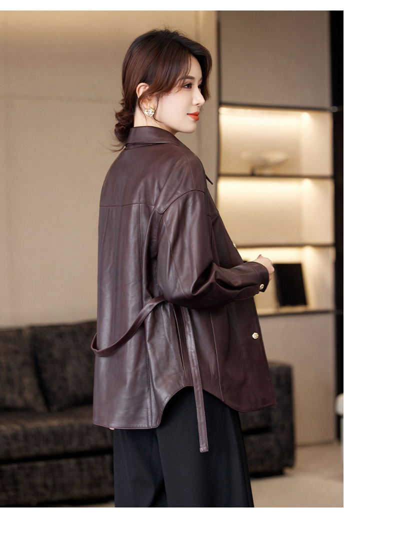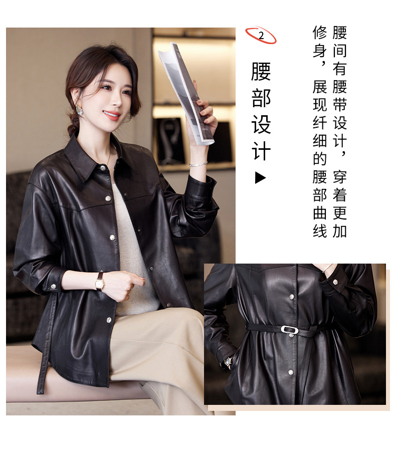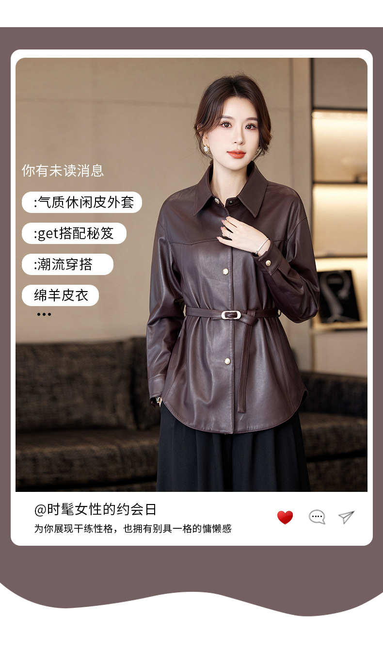 TC 23532真皮廓形植糅绵羊皮送腰带宽松休闲皮衣外套 商品图2