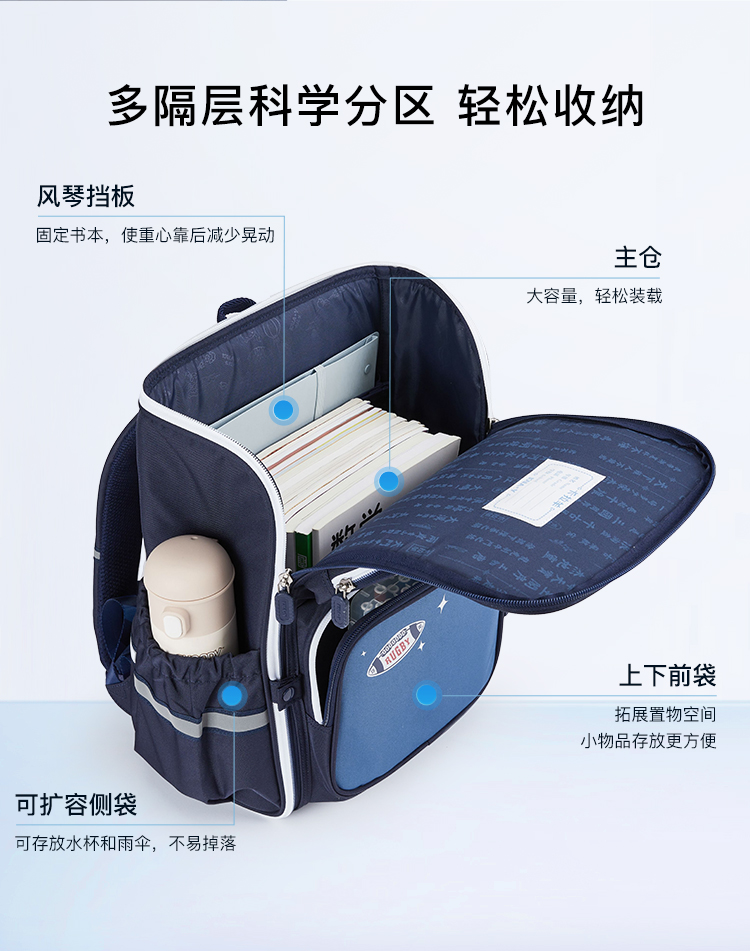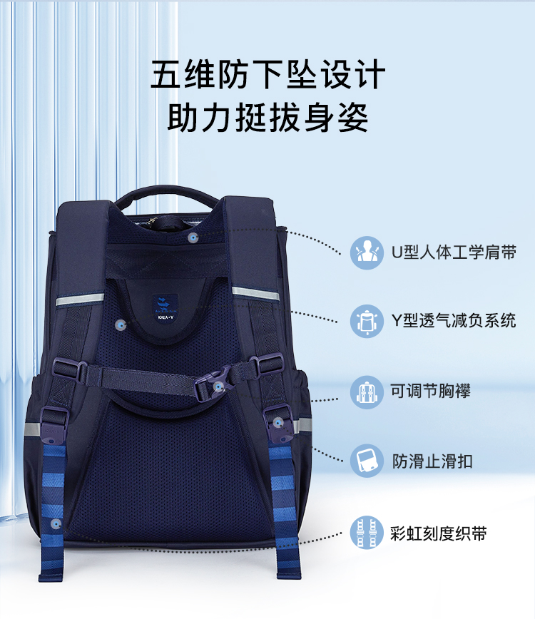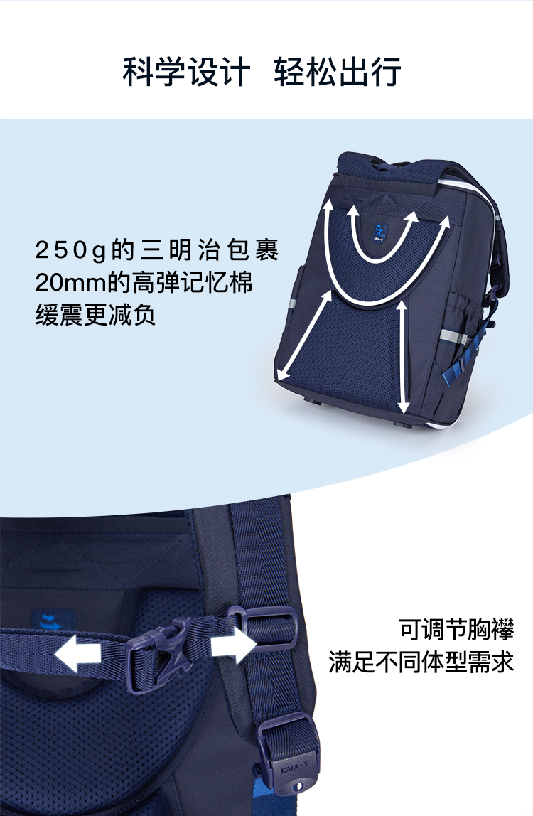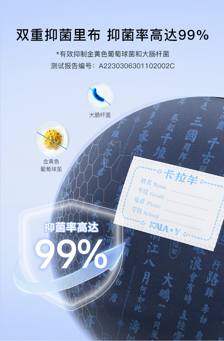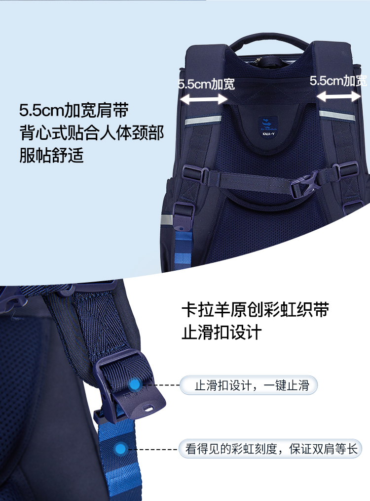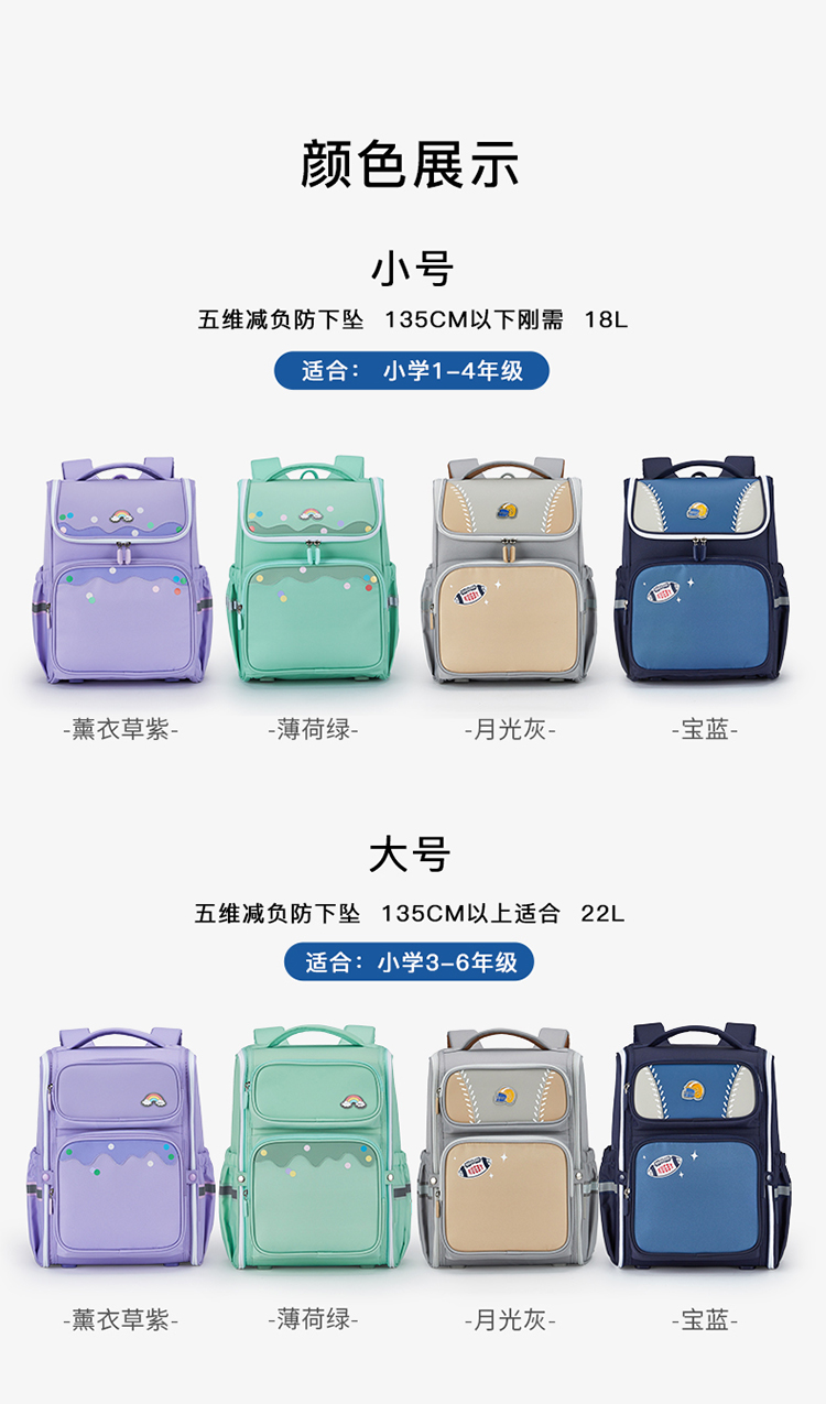 卡拉羊1-6年级18L/22L五维减负防下坠大嘴书包 马卡龙 CX2232+CX2702