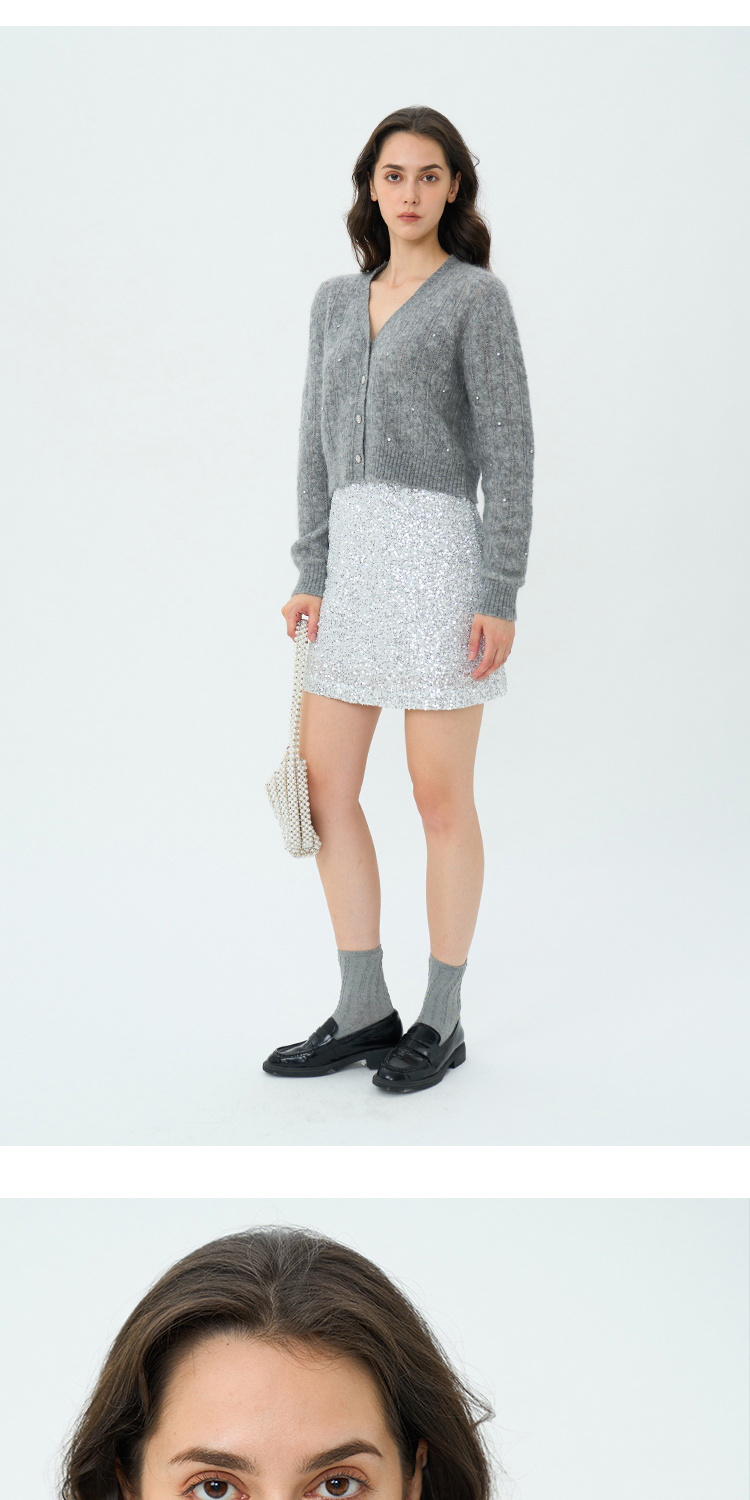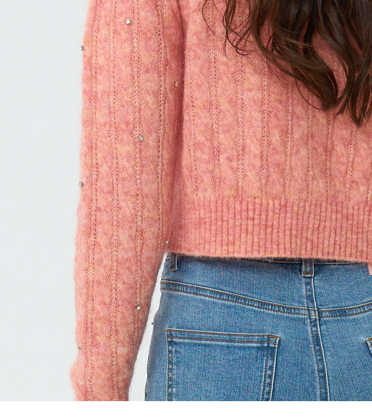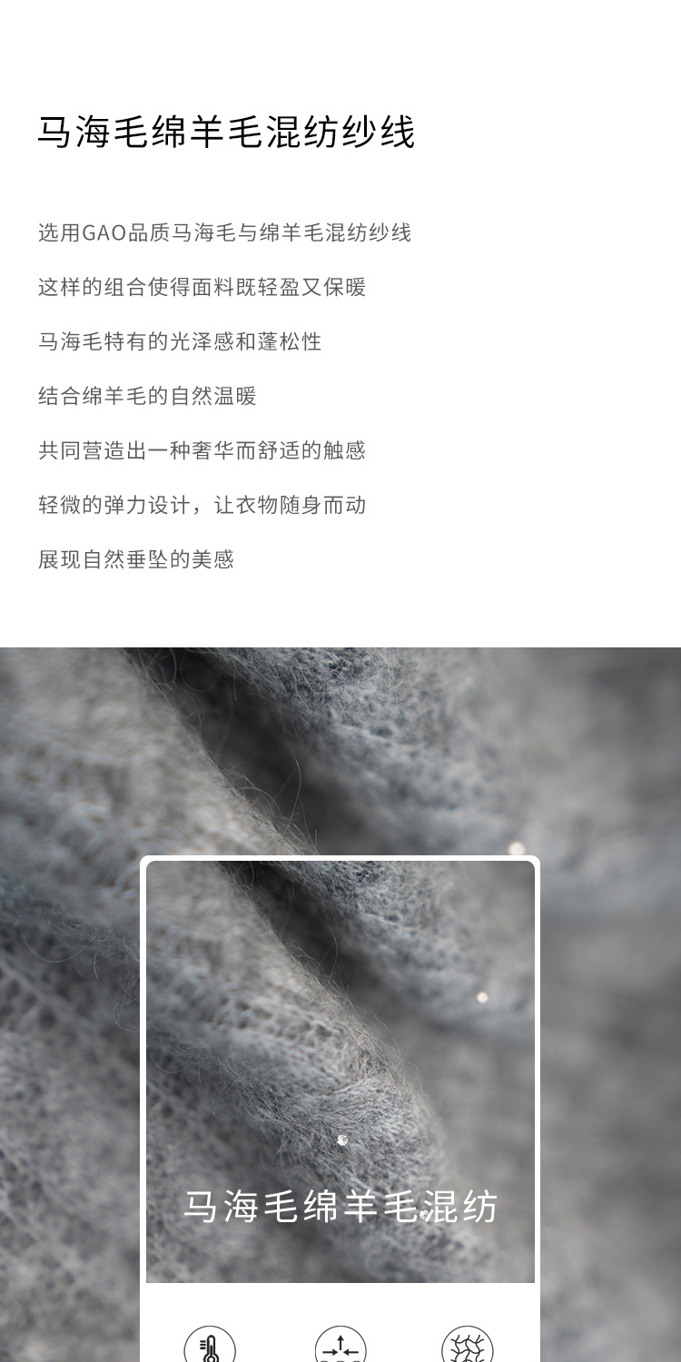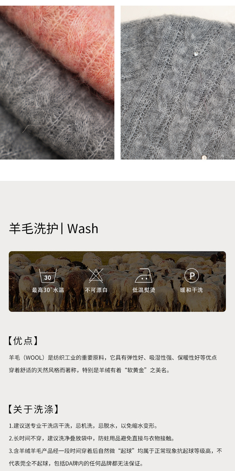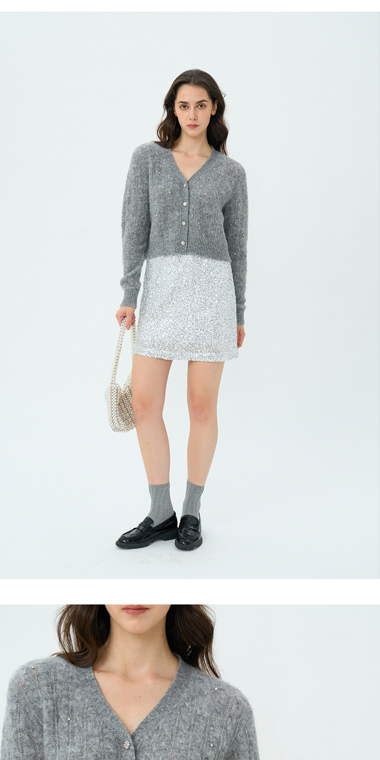 HeyDress马海毛钉钻针织开衫女秋冬法式v领宽松慵懒温柔气质上衣