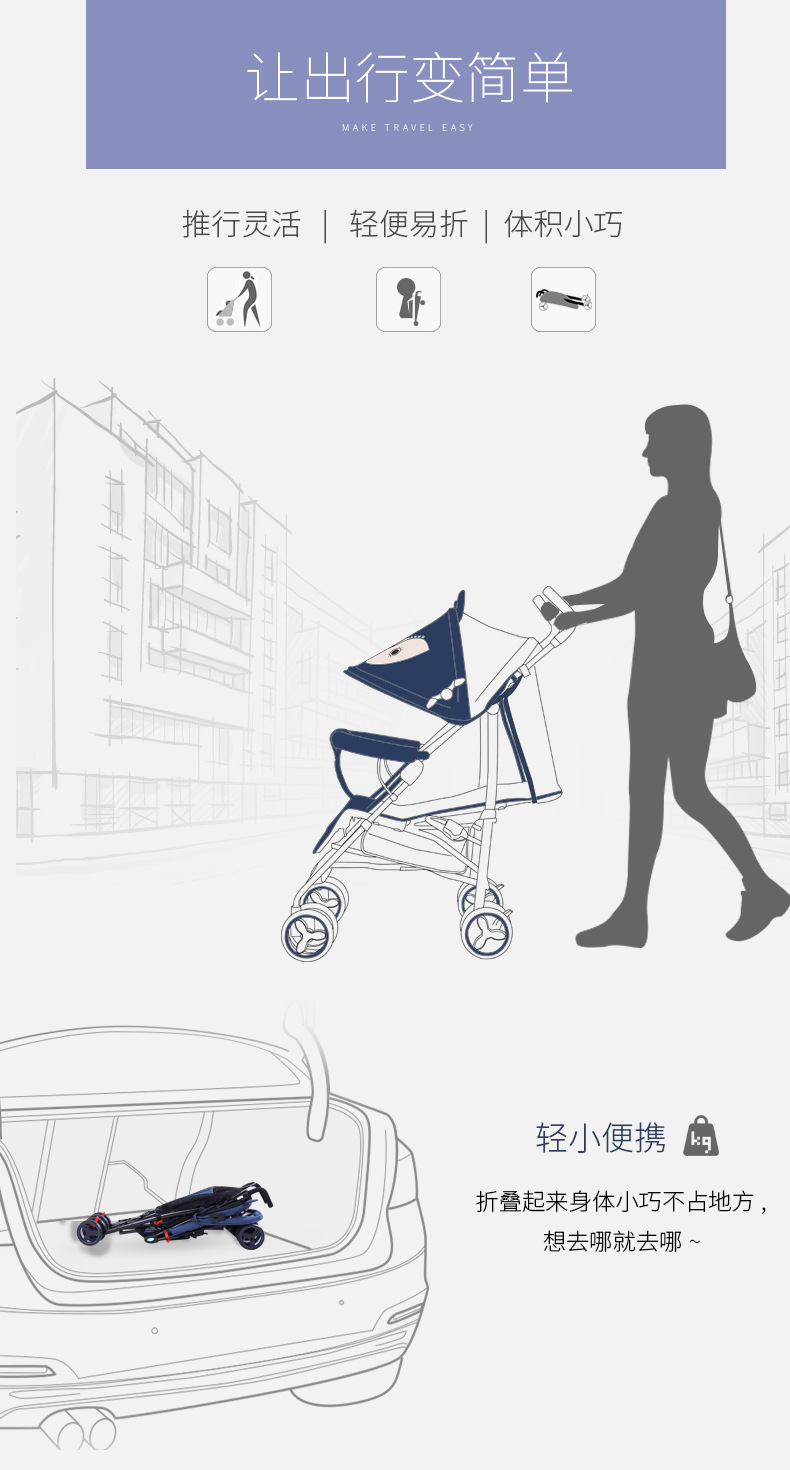 【婴儿车】轻便折叠童车可躺可坐避震儿童手推车