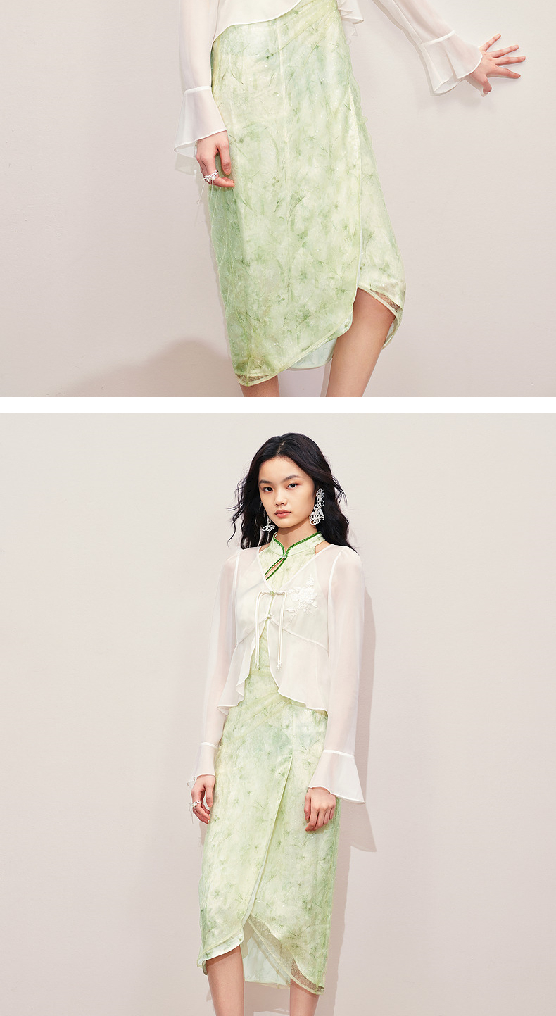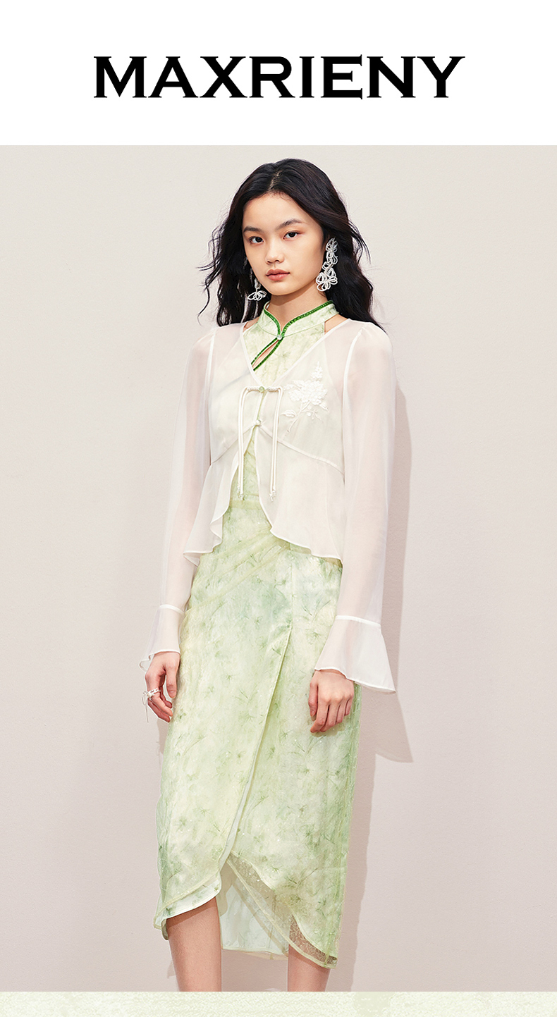 【商场同款】MAXRIENY清冷新中式连衣裙薄荷曼波国风旗袍裙子(货号:MS85DR275)