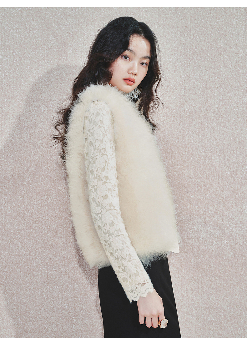 MAXRIENY2024秋冬女士气质小香风马夹百搭时尚毛绒无袖上衣(货号:MS85FU754)