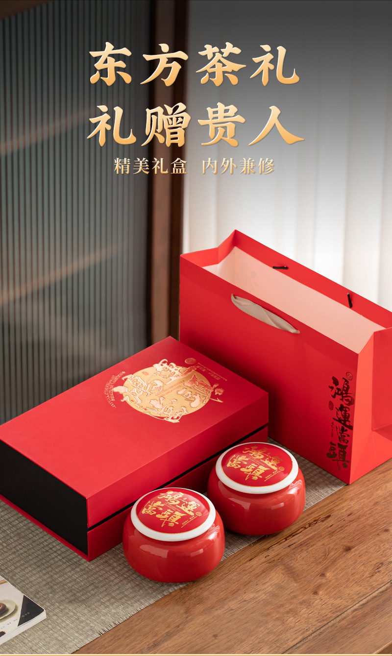 【陶瓷双罐金骏眉茶叶礼盒】鸿运当头红茶金骏眉 正山小种茶叶礼盒
