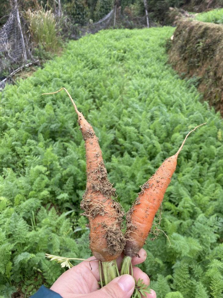 谢姐家的胡萝卜位于清远山区内,得益于优良的自然环境,昼夜温差较大,5月份的山区还是十来度的平均温度。