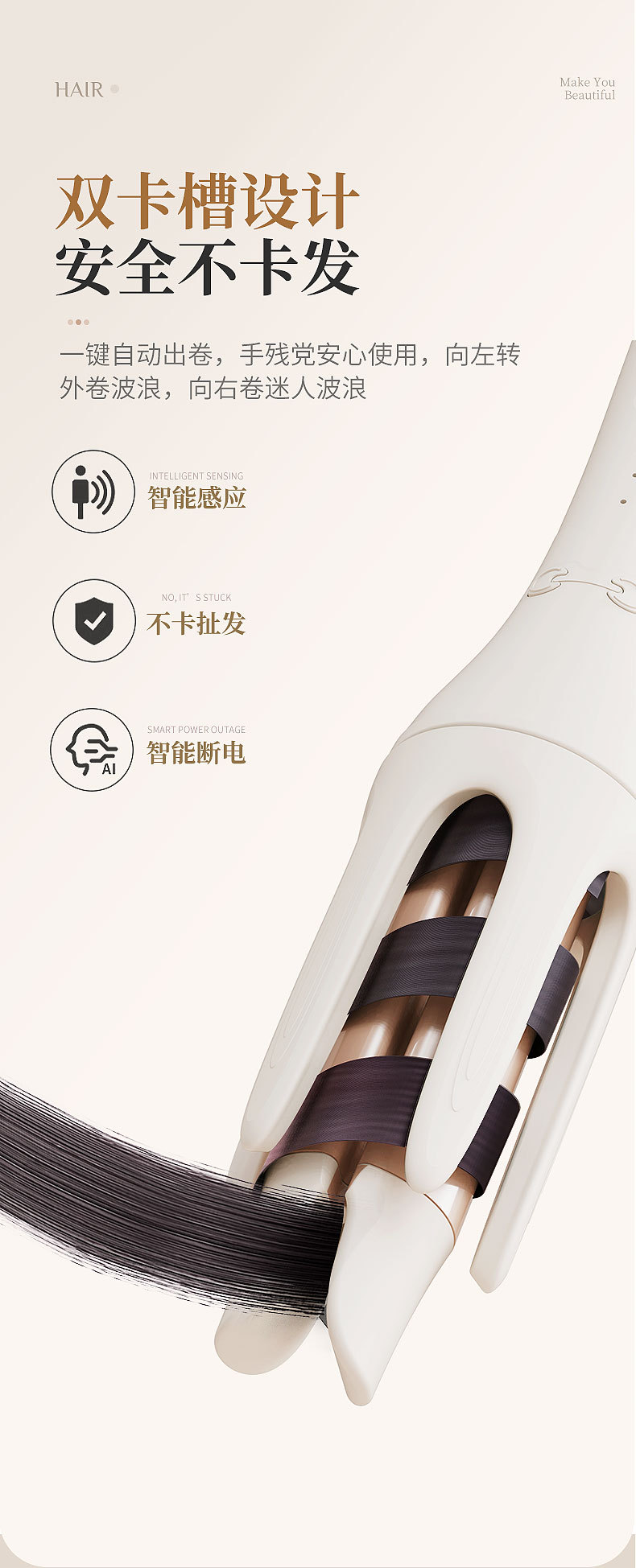 【双卡槽设计❗️安全不卡发】全自动卷发棒大卷32mm懒人卷发神器持久定型不伤发卷发器。jc