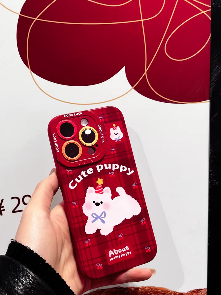 【可爱小狗图案❗️手感舒适色彩牢固】苹果17promax硅胶16软15趴趴小狗14卡通13新年女生高颜值手机壳。jc