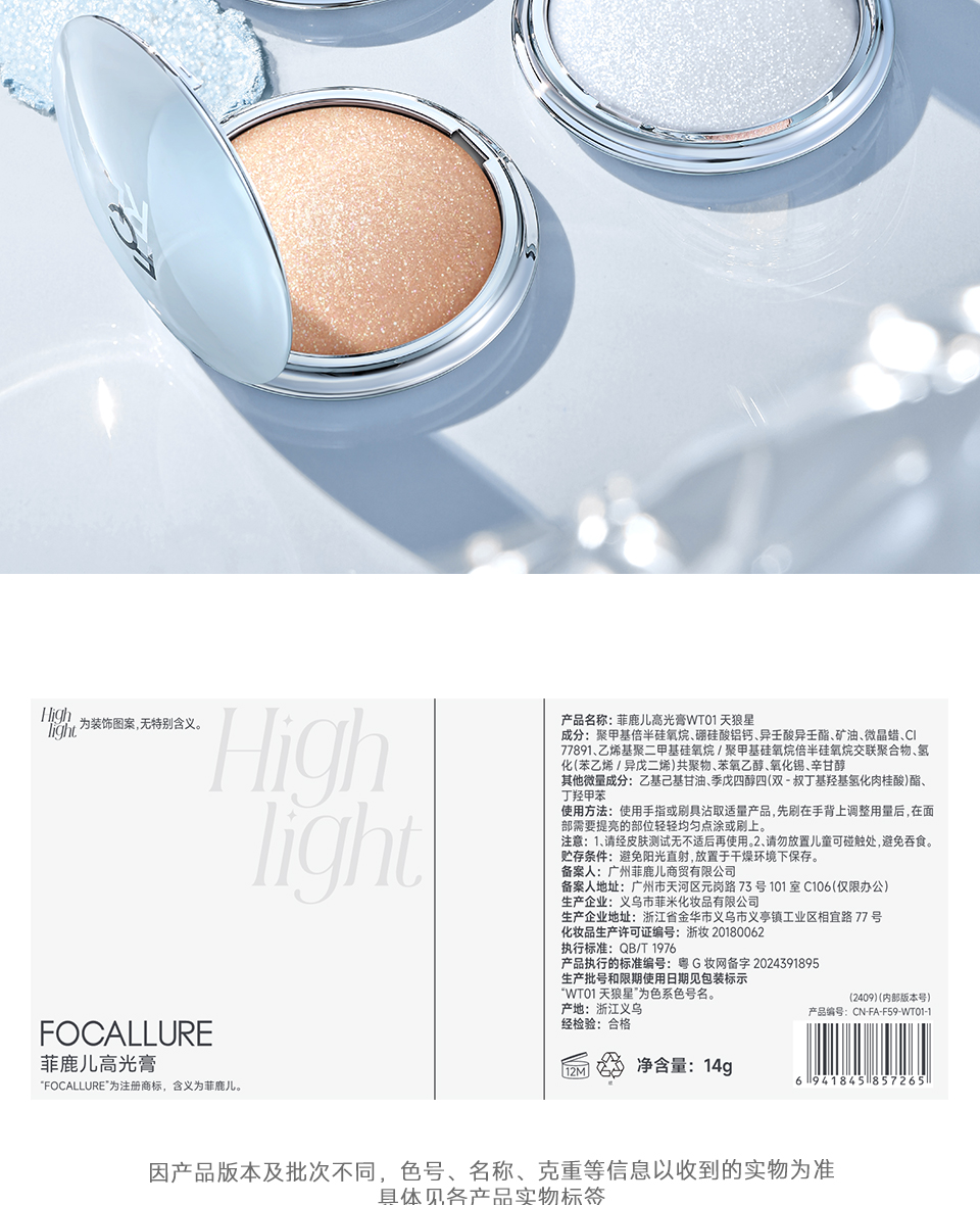 【有赞分销】菲鹿儿星系高光膏单色脸部提亮细闪珠光水光清透生姜香槟色土豆泥持久修容自然立体盘
