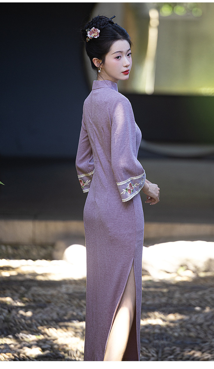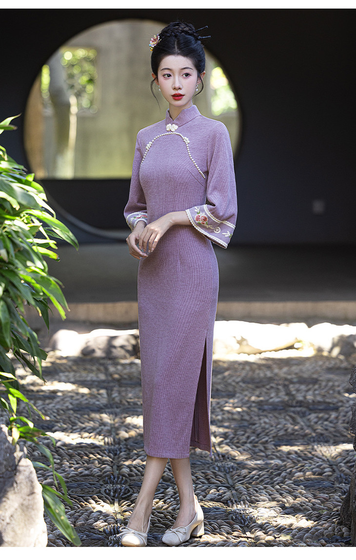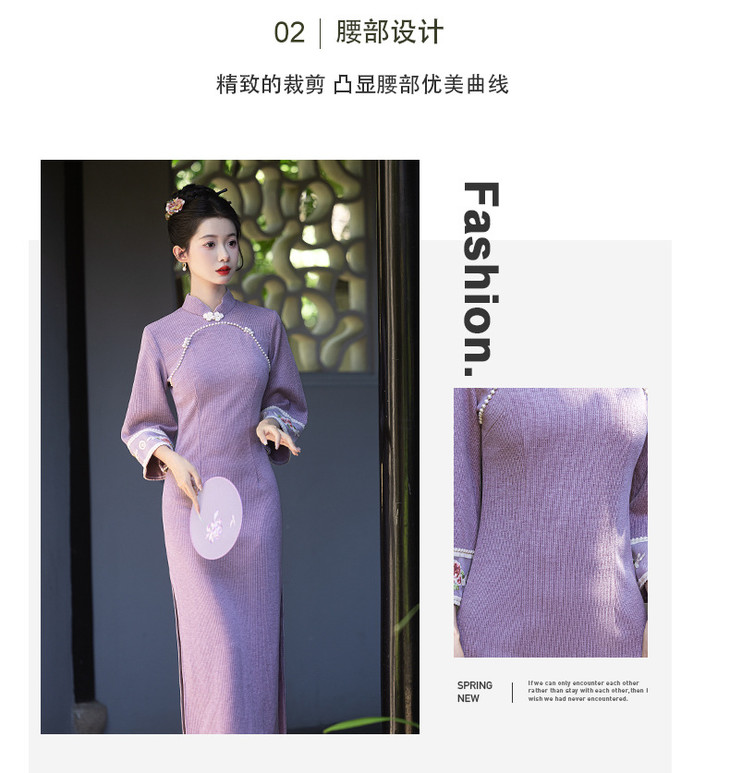 秋冬年轻款高端气质新中式日常可穿长袖绝美针织旗袍LSB&3082 商品图2