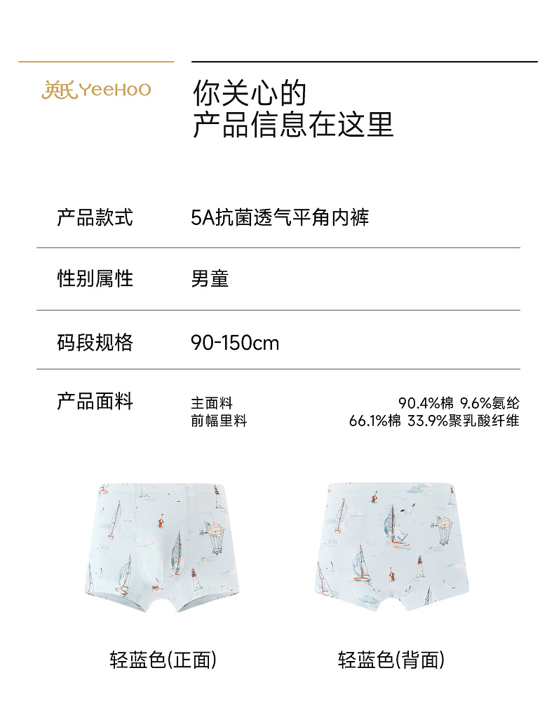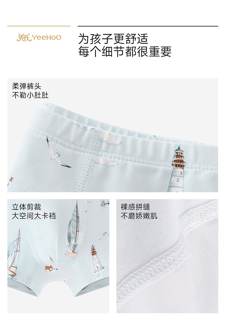 【商场同款】英氏儿童内裤男童平角内裤四季款5A抗菌四角裤新款