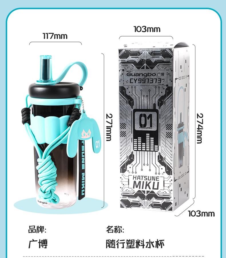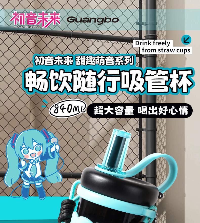 【广博】初音未来正版甜趣萌音畅饮随行吸管水杯840ml六一儿童节送女
