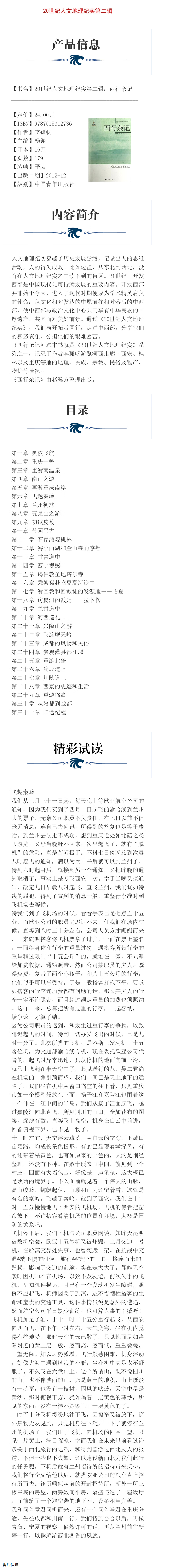 西行杂记/20世纪人文地理纪实第二辑 李孤帆著