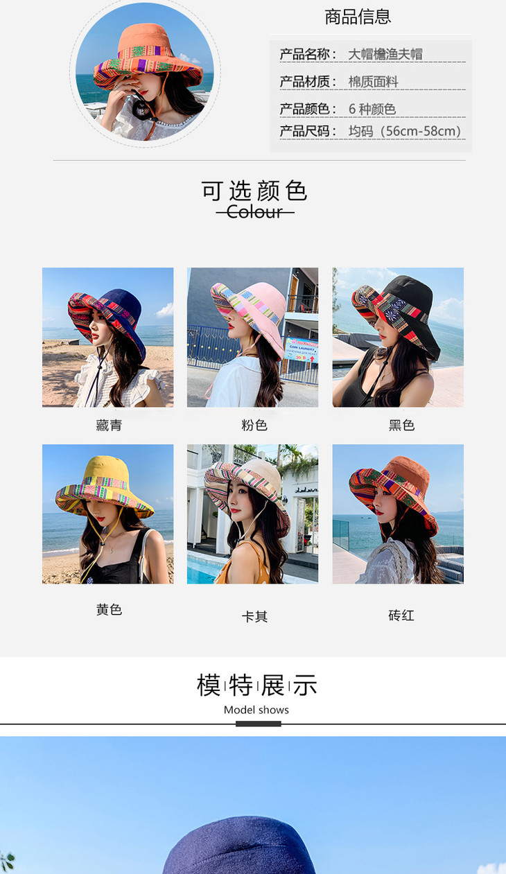 ZY2058-夏季新款渔夫帽大沿遮阳帽户外骑车双面戴沙滩帽子