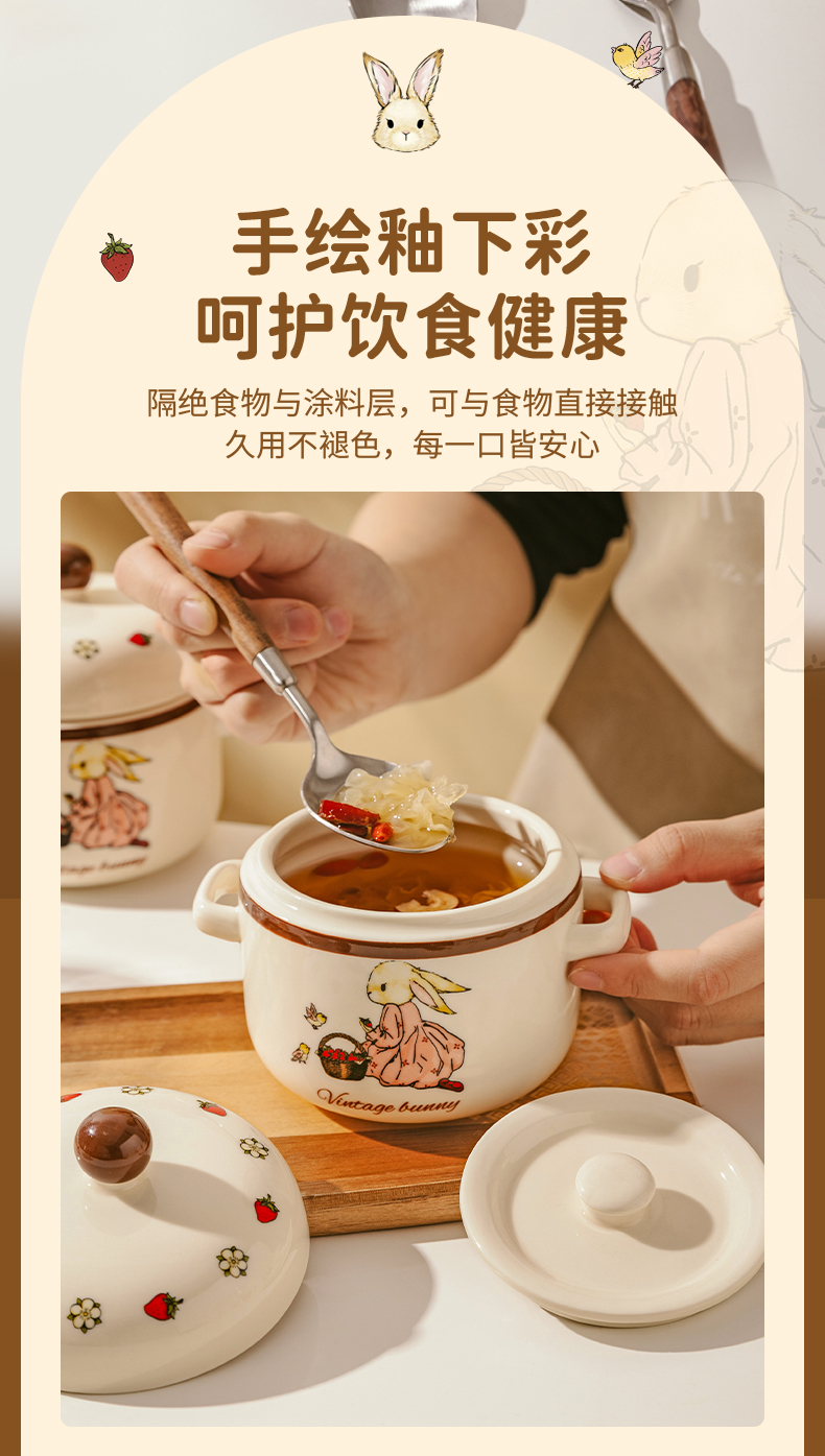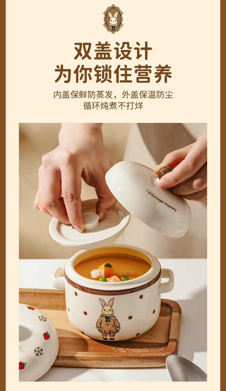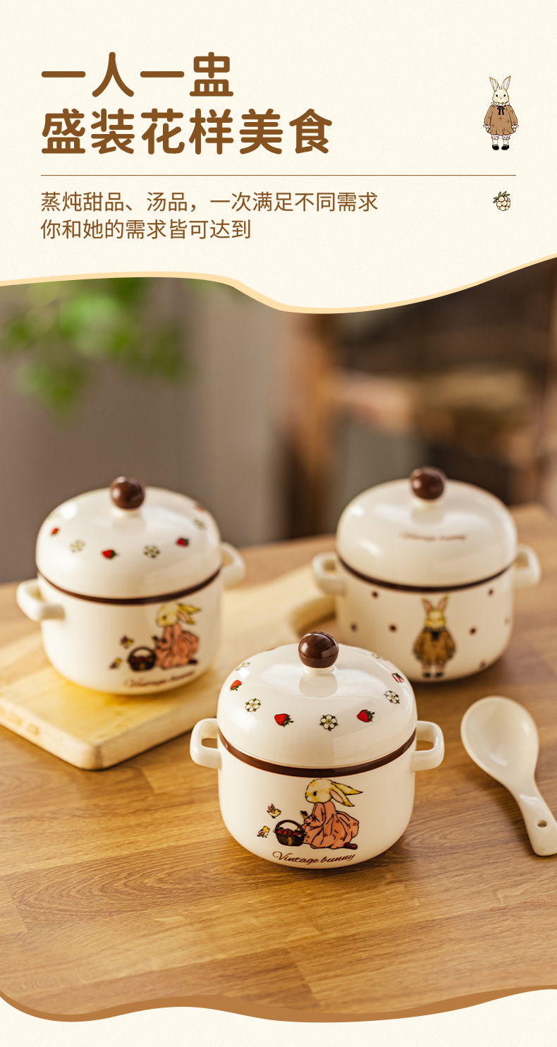 摩登主妇 赫拉兔炖盅陶瓷燕窝专用双耳带盖汤盅家用炖碗蒸蛋盅炖罐