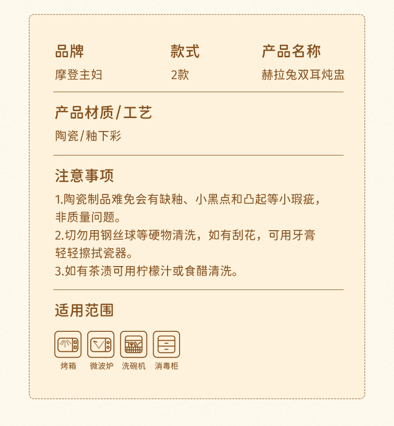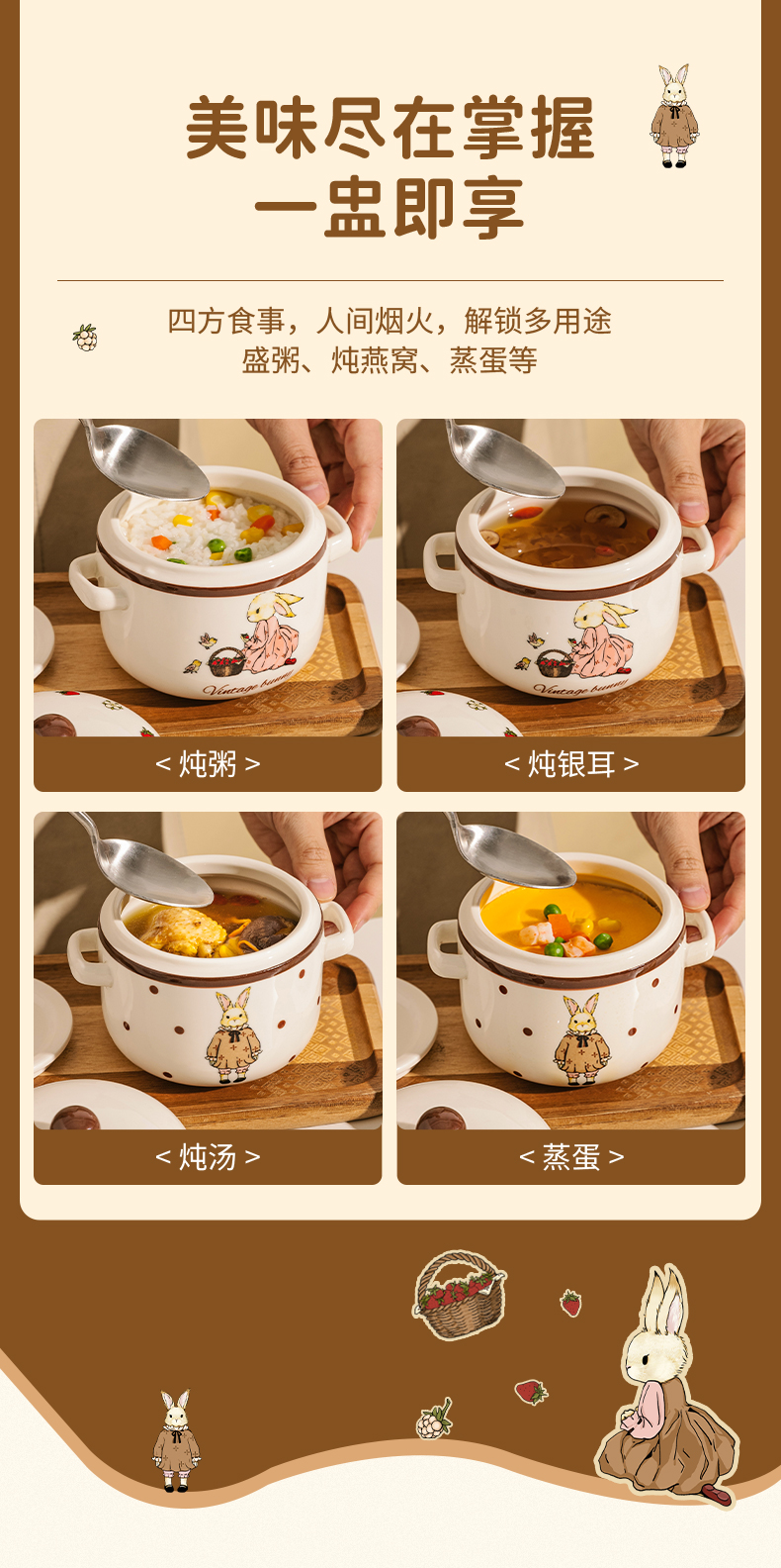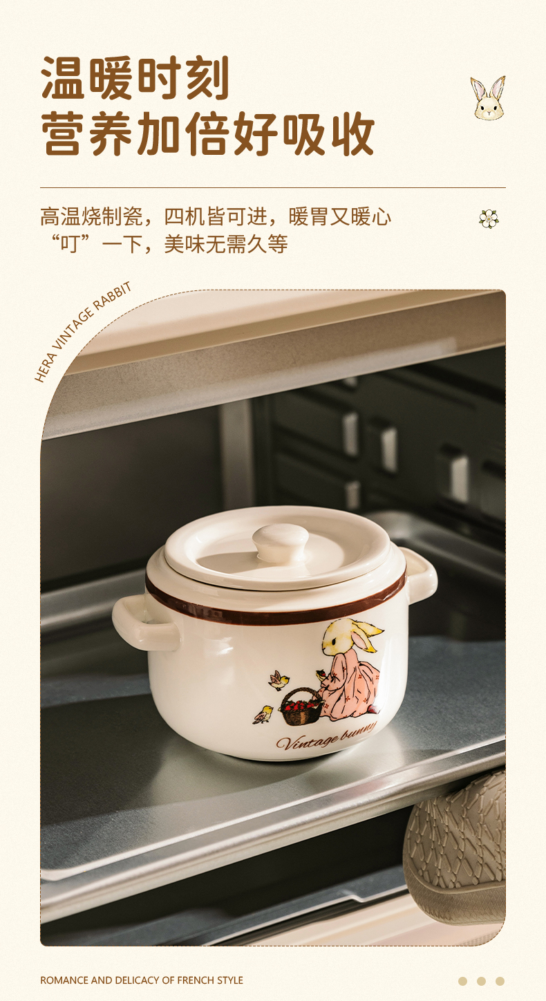 摩登主妇 赫拉兔炖盅陶瓷燕窝专用双耳带盖汤盅家用炖碗蒸蛋盅炖罐