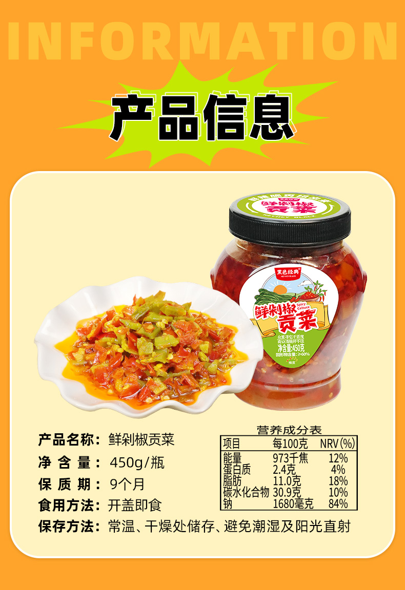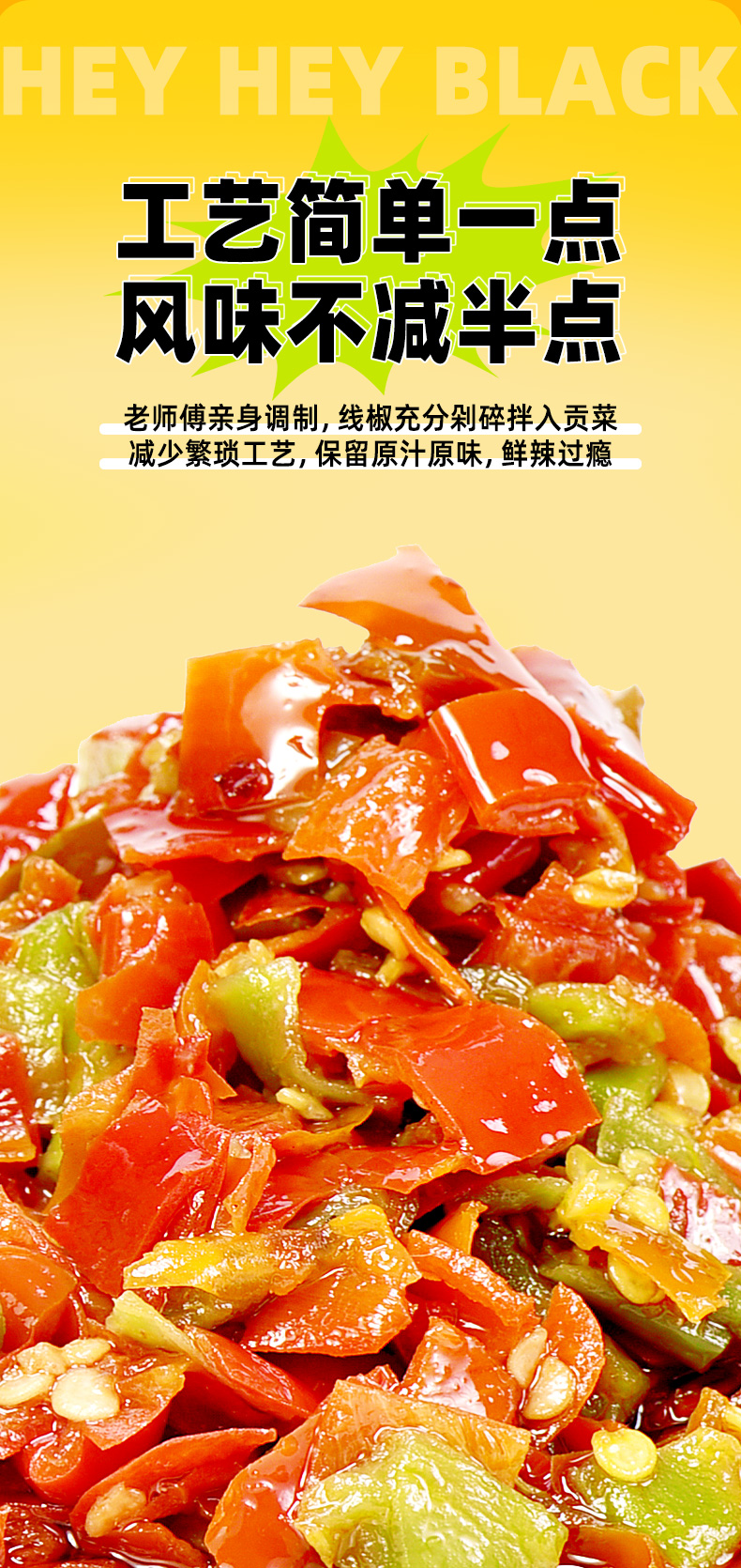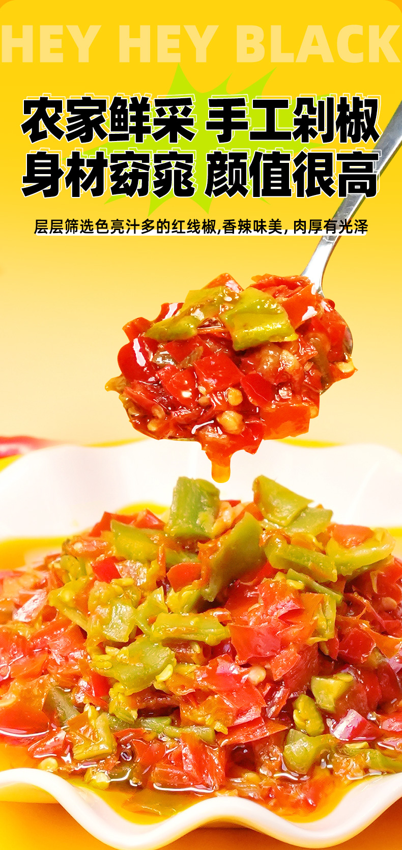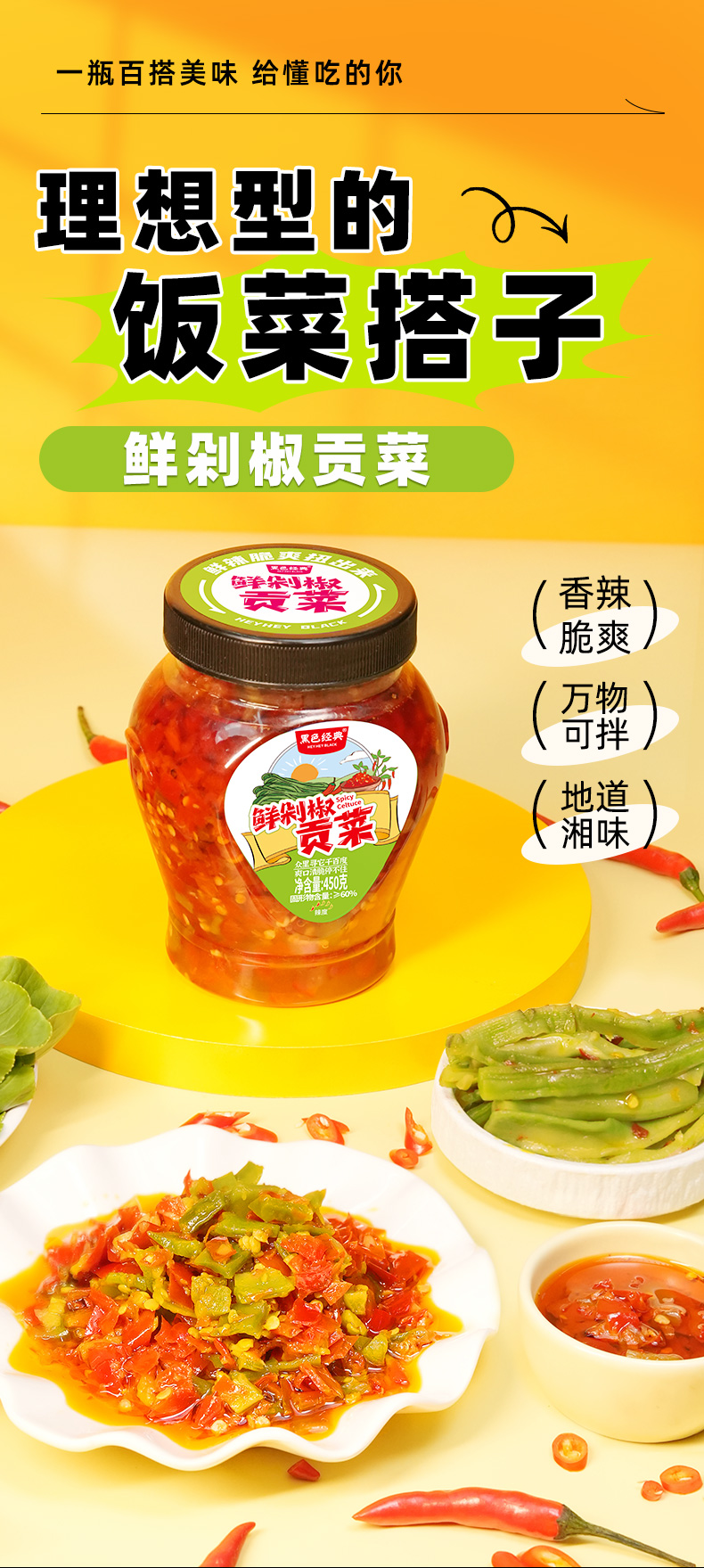 【57.6元任选3件】黑色经典鲜剁椒贡菜450g/瓶 地道湘味 爽口清脆拌饭拌菜百搭