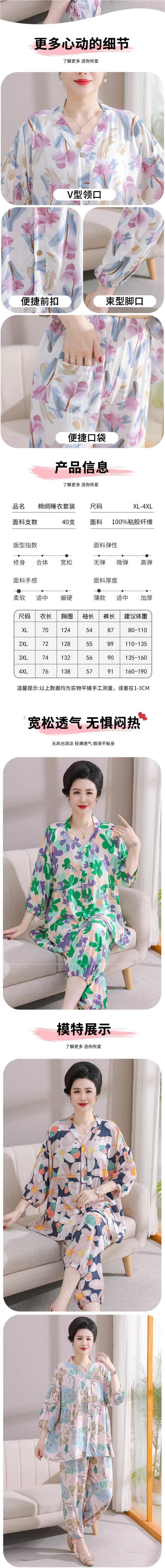 中老年妈妈夏装睡衣女款,棉绸加肥加大凉感冰丝开衫套装夏LJX-856