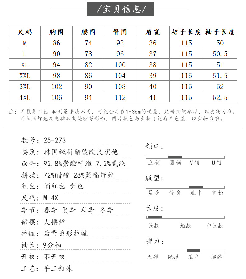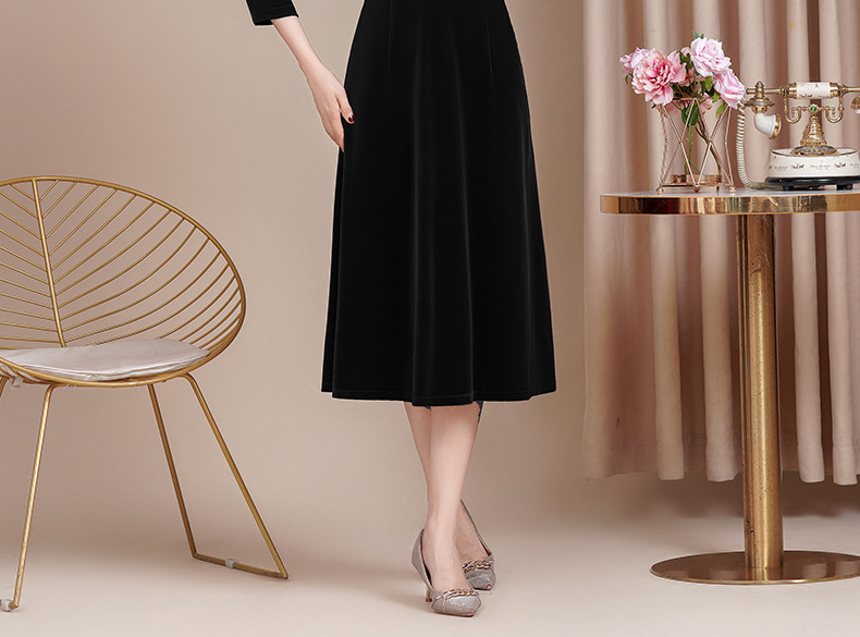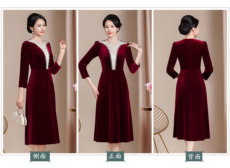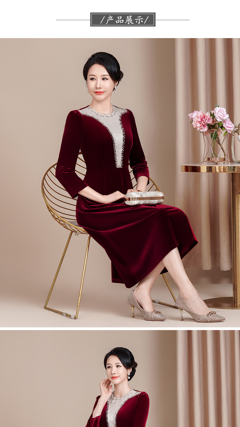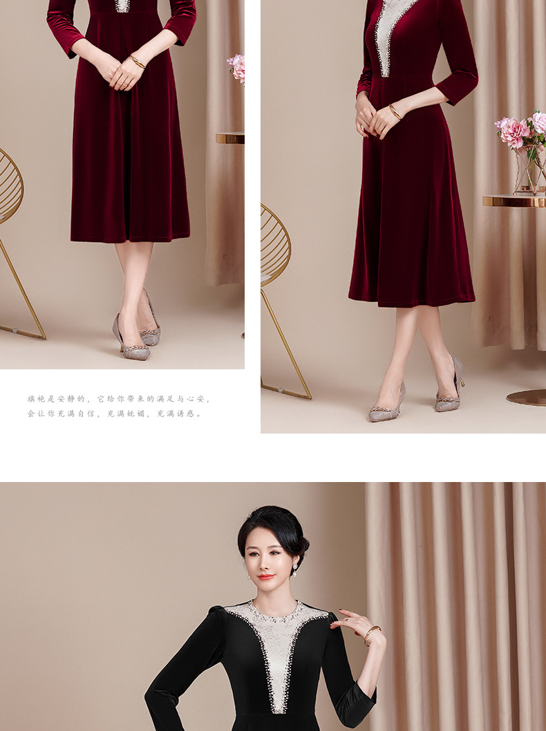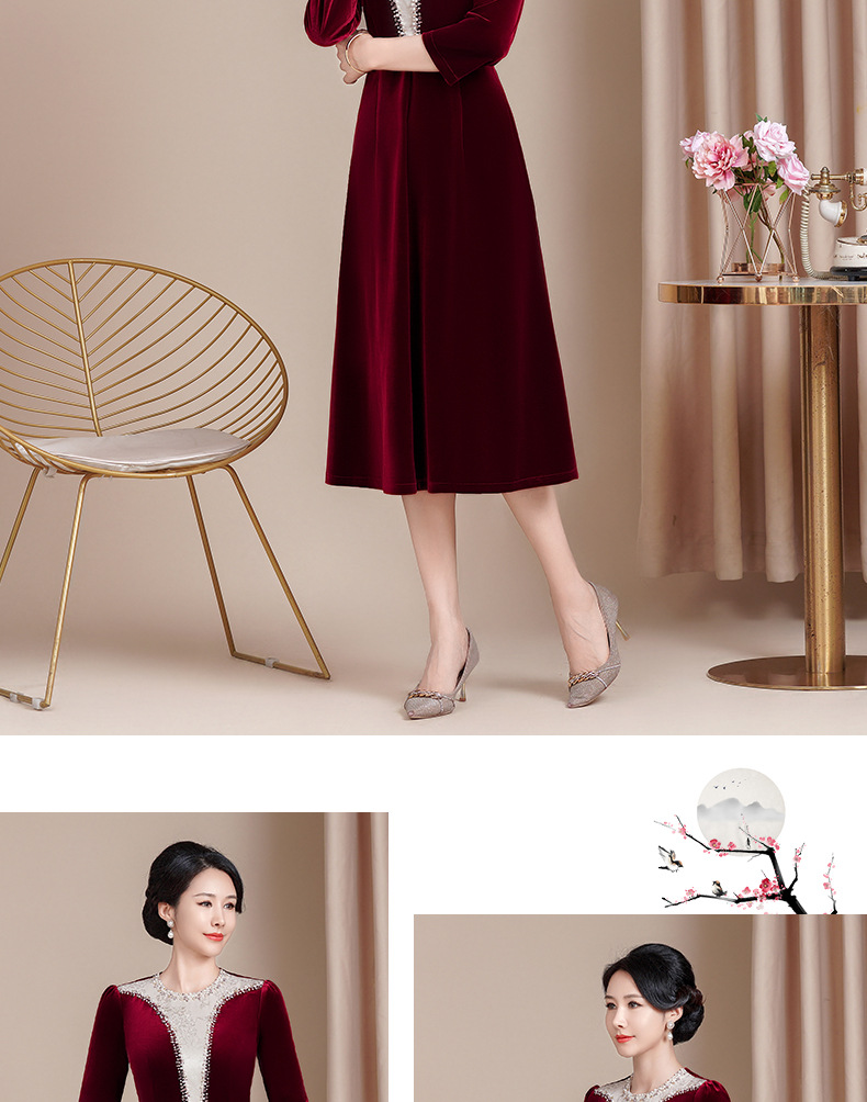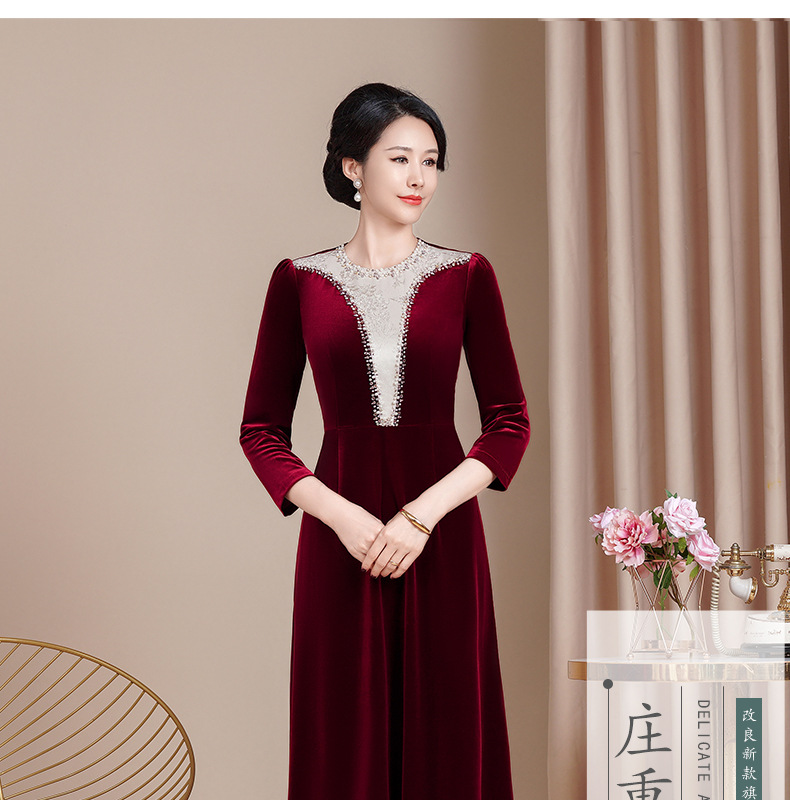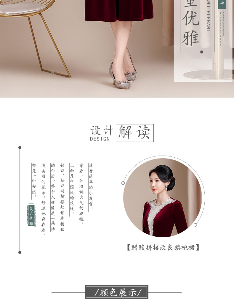 HYX新款高级感女丝绒旗袍连衣裙婚礼国潮婚宴装气质大摆