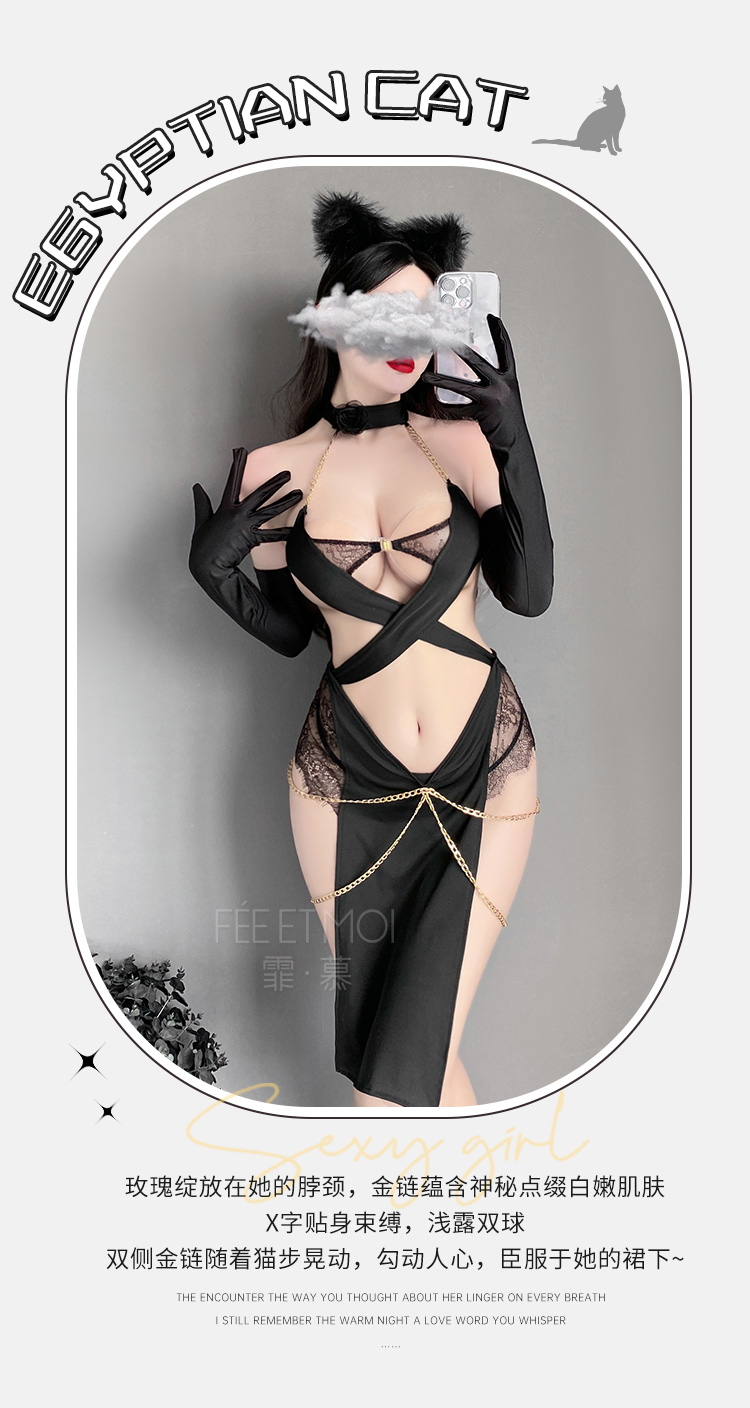 【情趣内衣】霏慕 埃及猫女金链缀饰连身裙6671