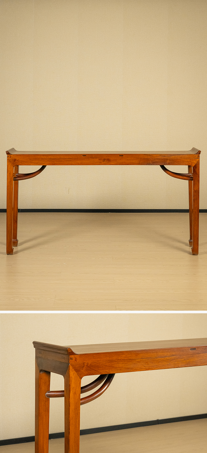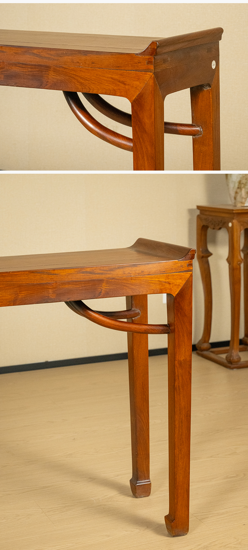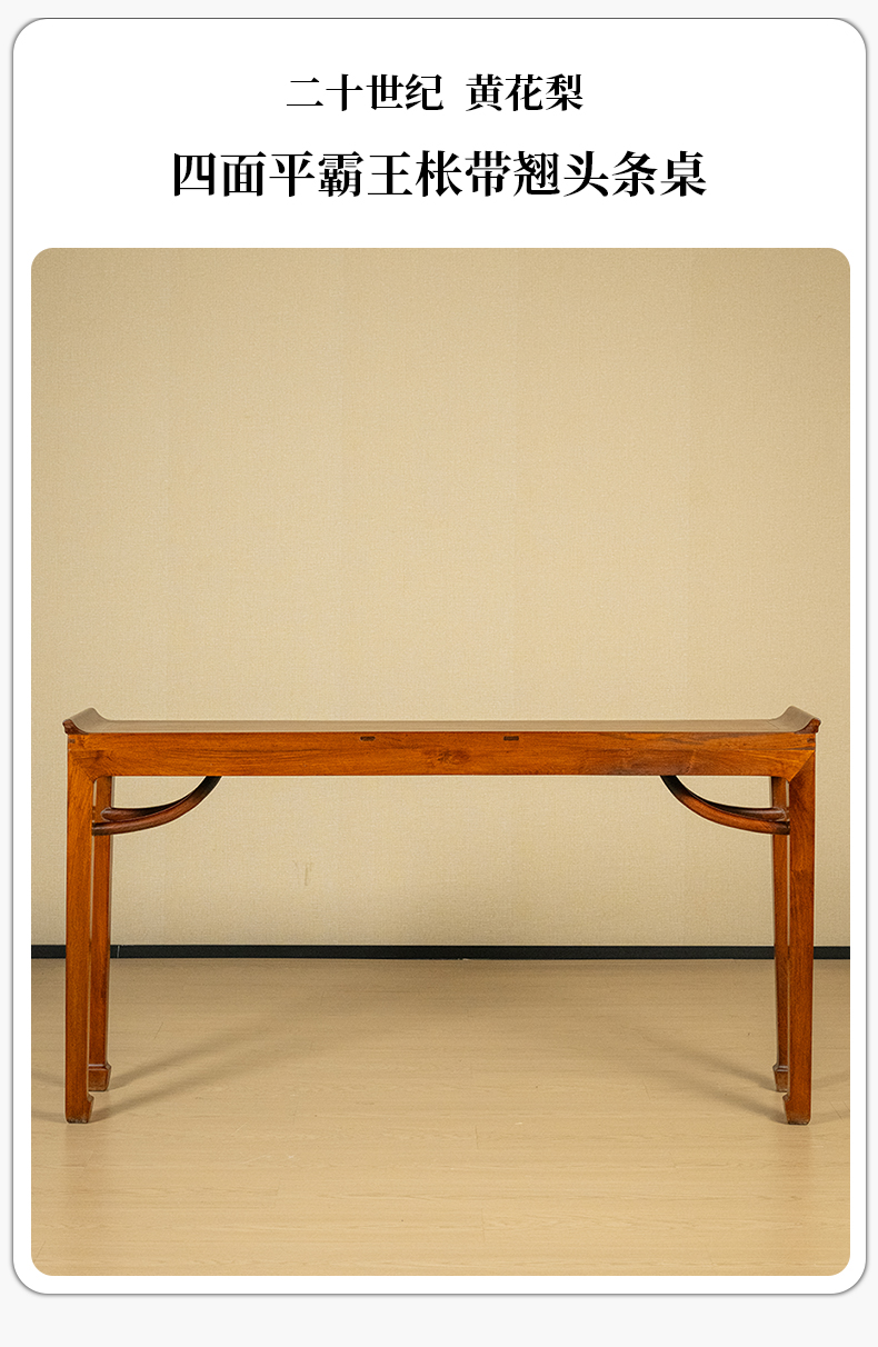 二十世纪 黄花梨四面平霸王枨带翘头条桌
