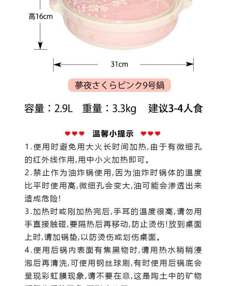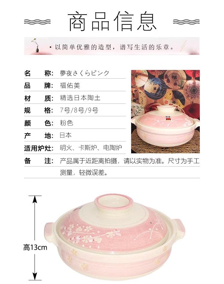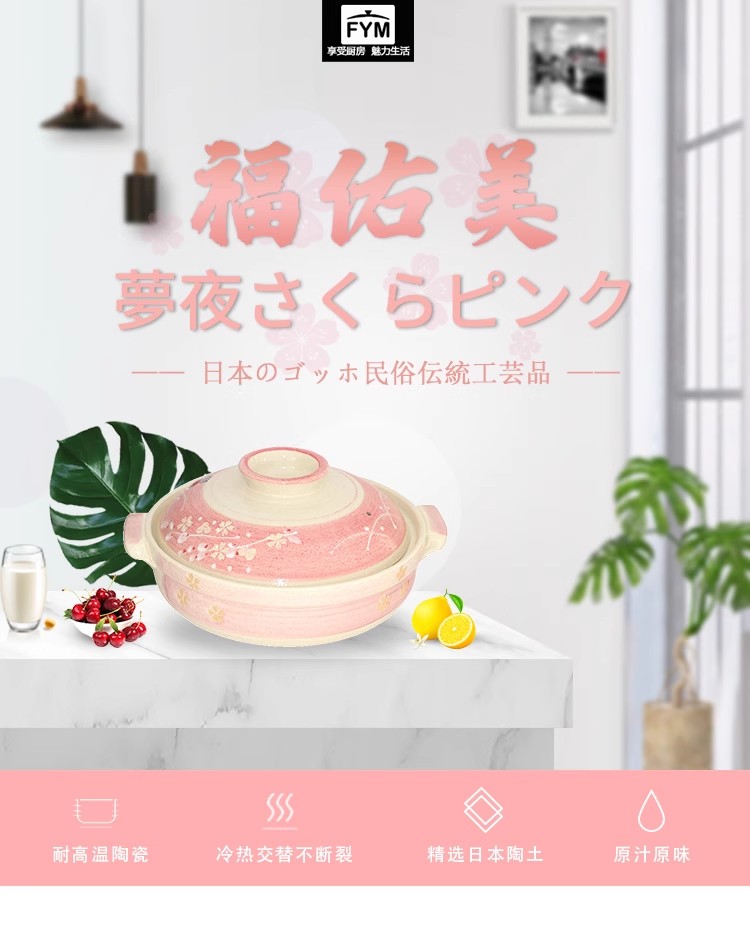 日本进口万古烧樱花炊飯鍋(9号)