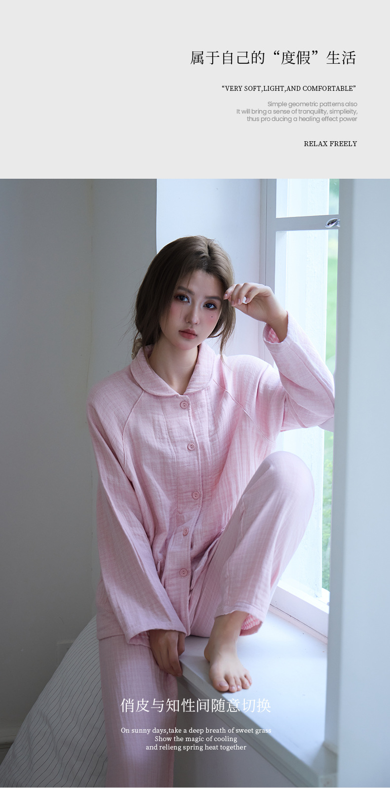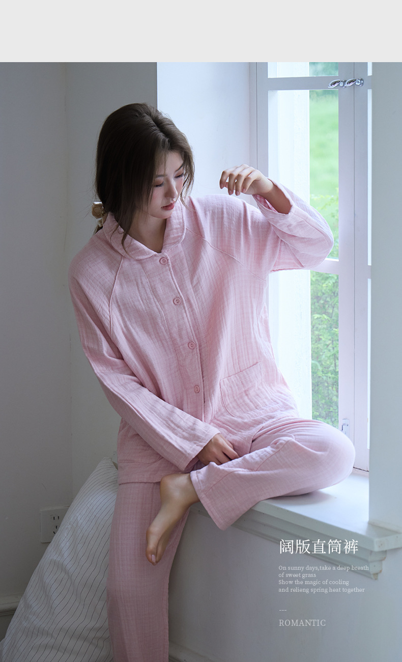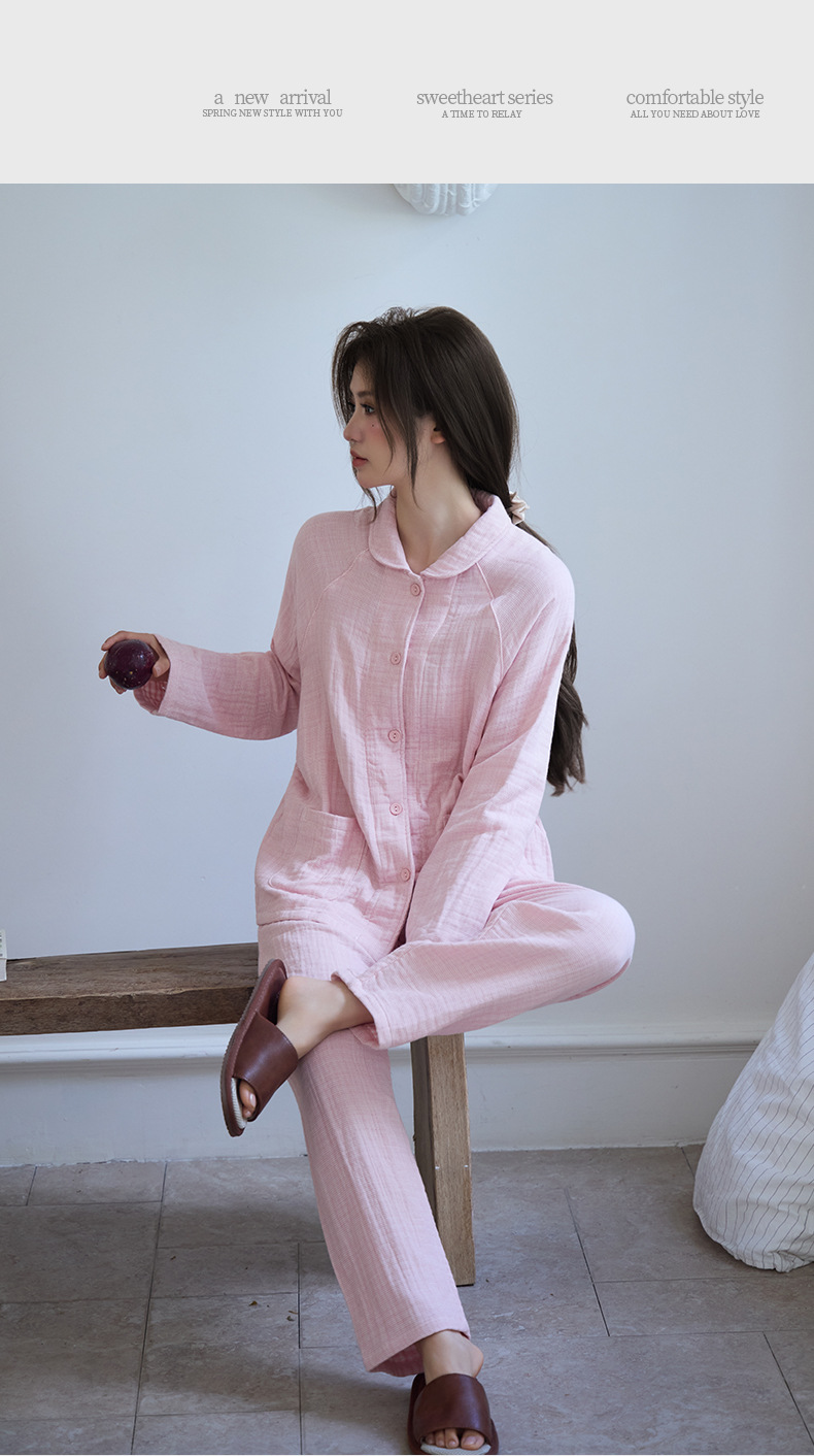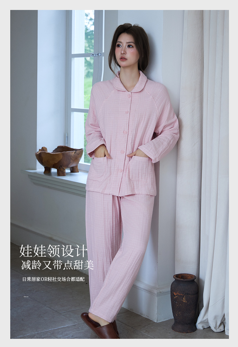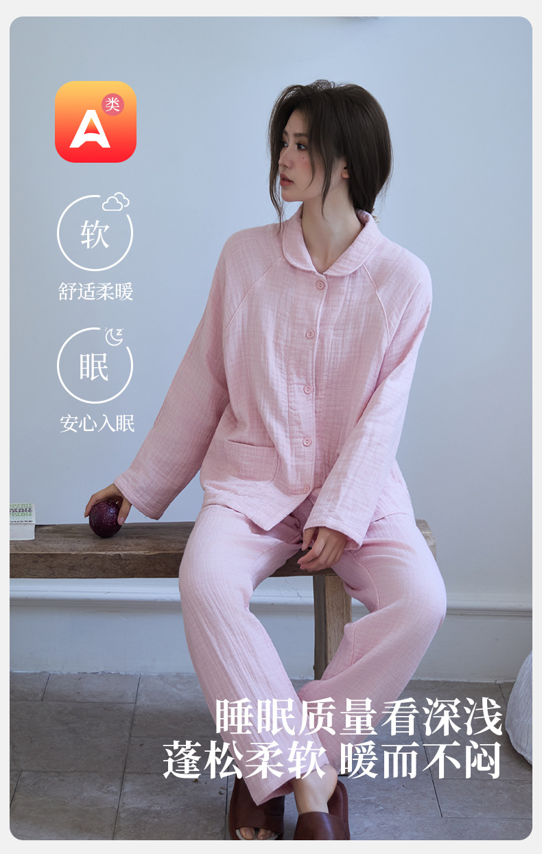 丁摩 新款包边纯棉四层纱布情侣款家居服套装春秋冬季加厚全棉男女士睡衣5ZF-295