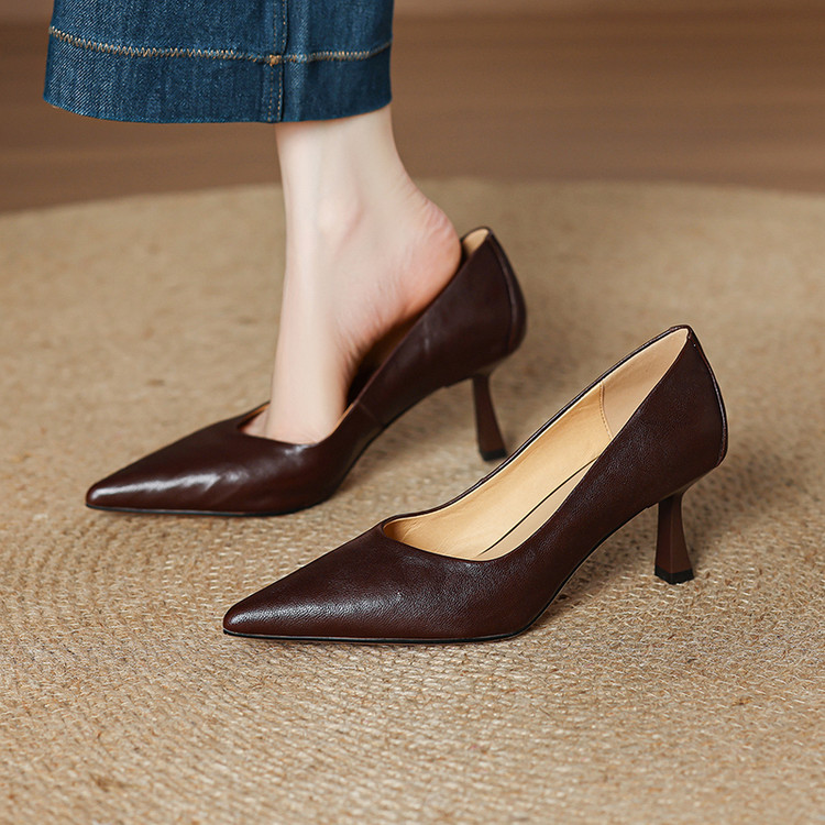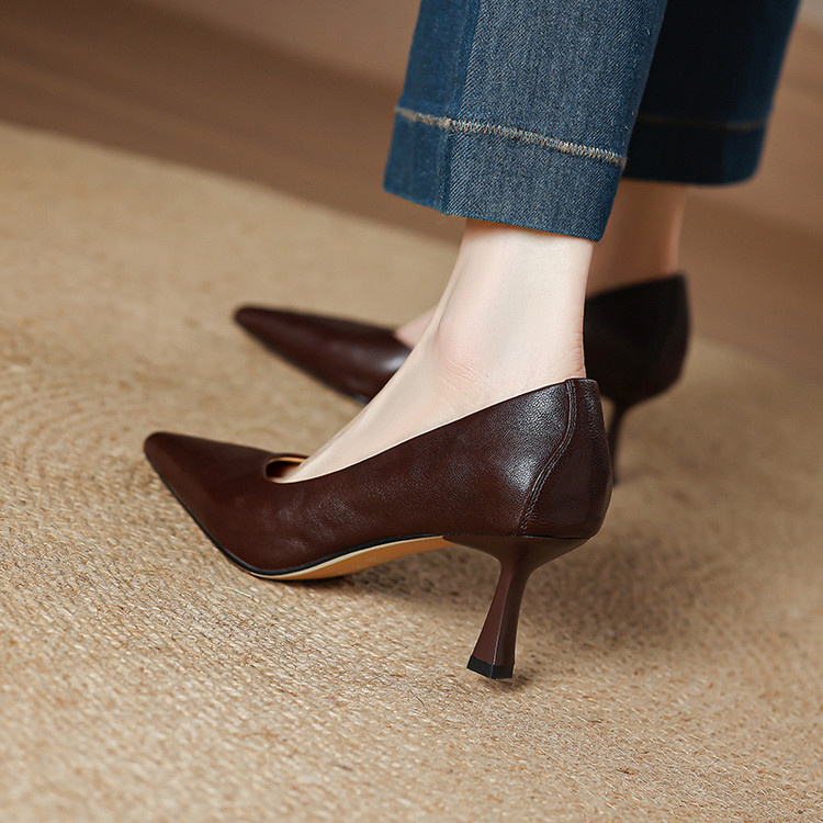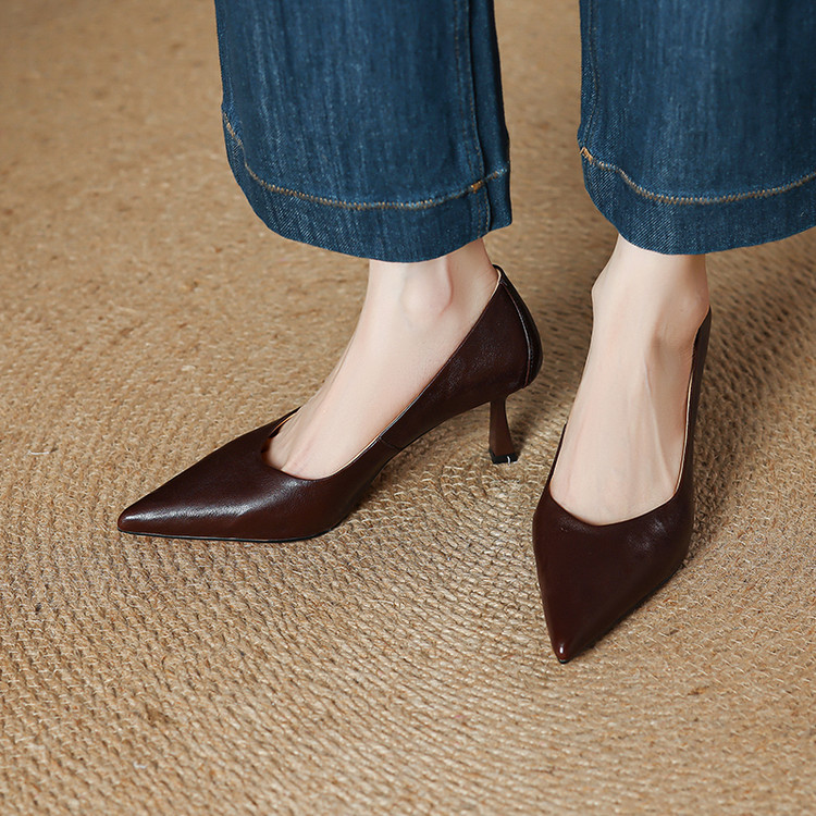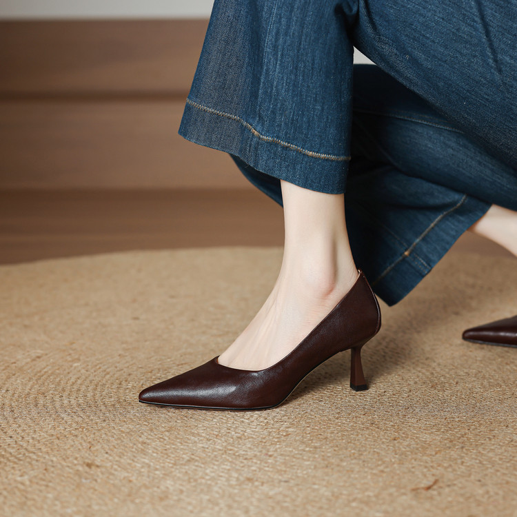 【货 号】C166【鞋面材质】头层植鞣羊皮【鞋垫材质】羊皮【内里材质】头层猪皮【鞋 底】牛筋底【跟 高】6.5cm【颜 色】棕色 黑色【尺 码】33-40(大小定制不退换)