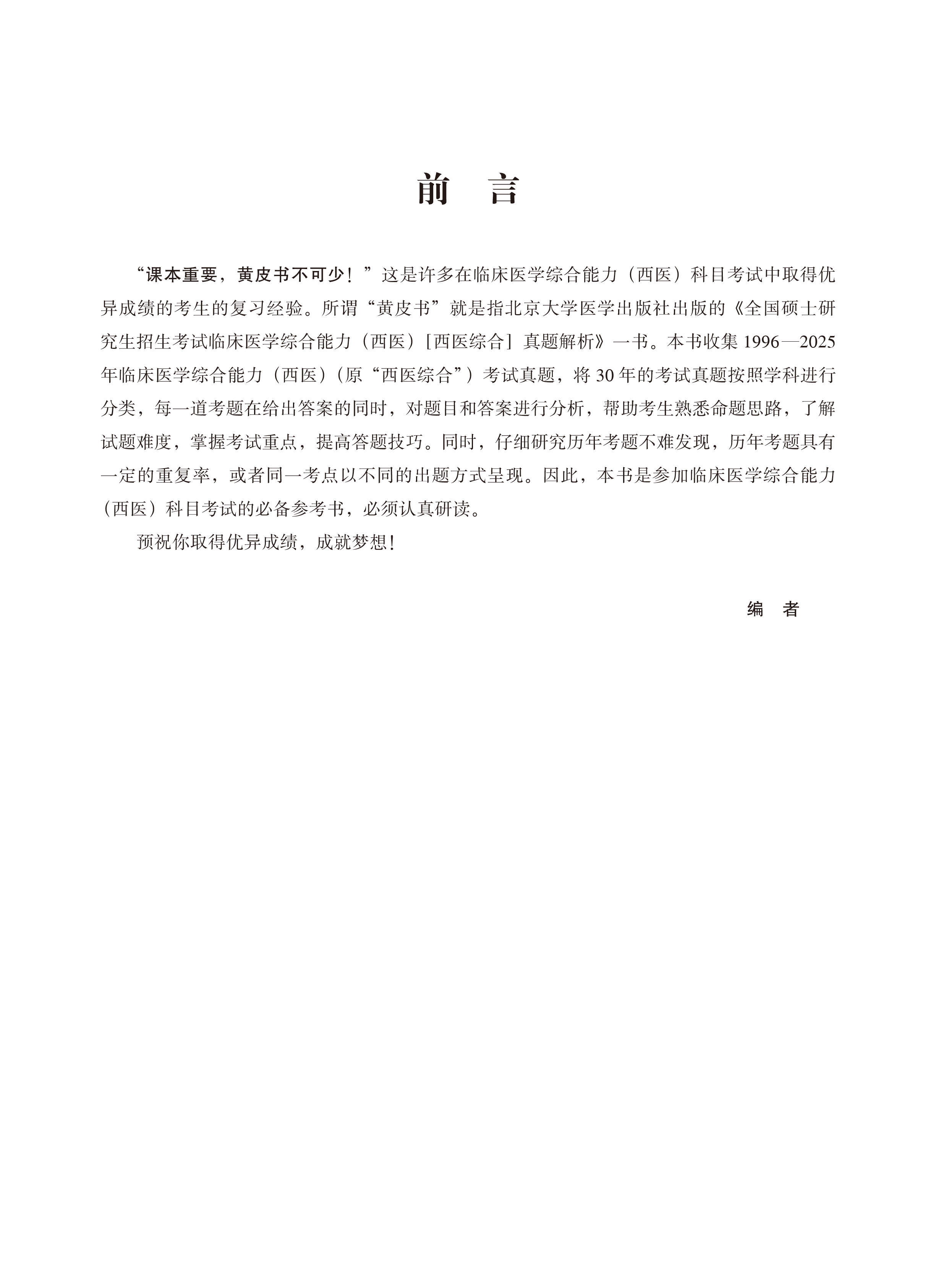 2026全国硕士研究生招生考试临床医学综合能力(西医)[西医综合]真题解析(1996—2025) 北医社