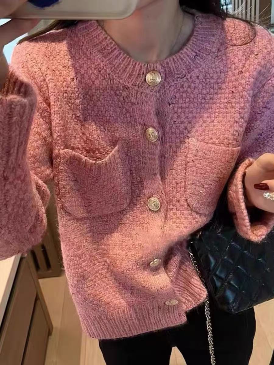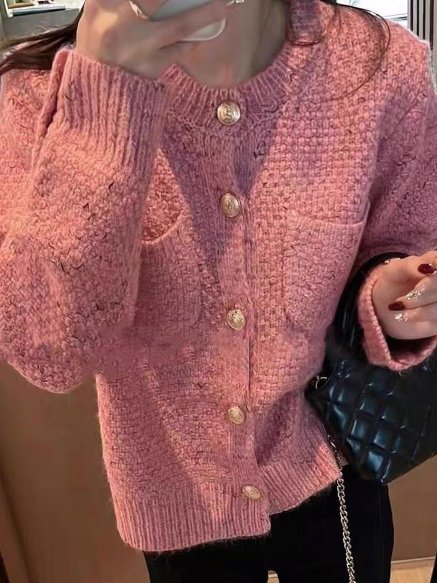 【孤品捡漏】(样衣)G86粉色花纱针织开衫毛衫-喜出