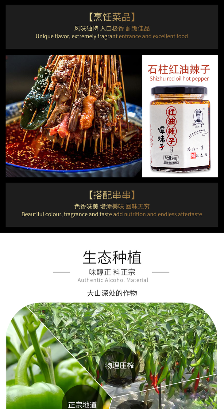 石柱谭妹子红油辣子 240g瓶 自制香辣红油辣椒油凉皮拌菜调味料 包邮