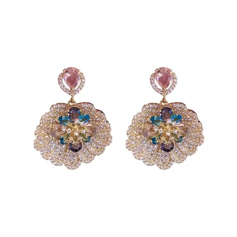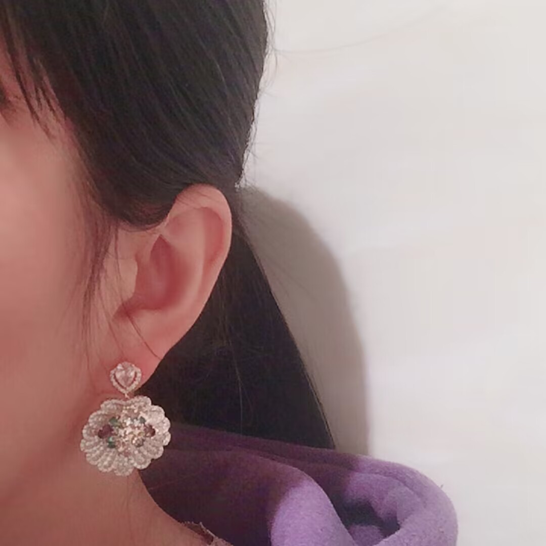 雀说 高版本925银+加厚真金电镀微镶锆石镶钻扇叶耳环波西米亚高4ZF-1232