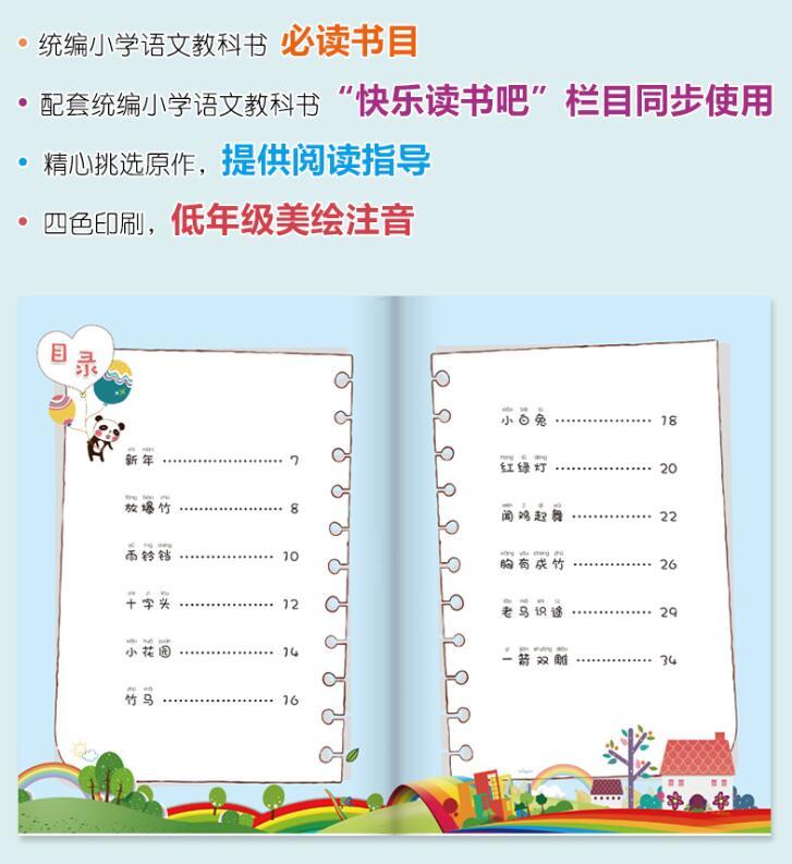 本书精选金波、周作人、陶行知、胡适、徐志摩等众多现当代名家创作的儿歌、童谣和成语寓言故事,紧扣语文教材快乐读书吧阅读要求,适合一年级孩子阅读,搭配精美插图,图文并茂,内容积极、乐观、向上,充满童趣童乐,可以提高学生的阅读理解能力。