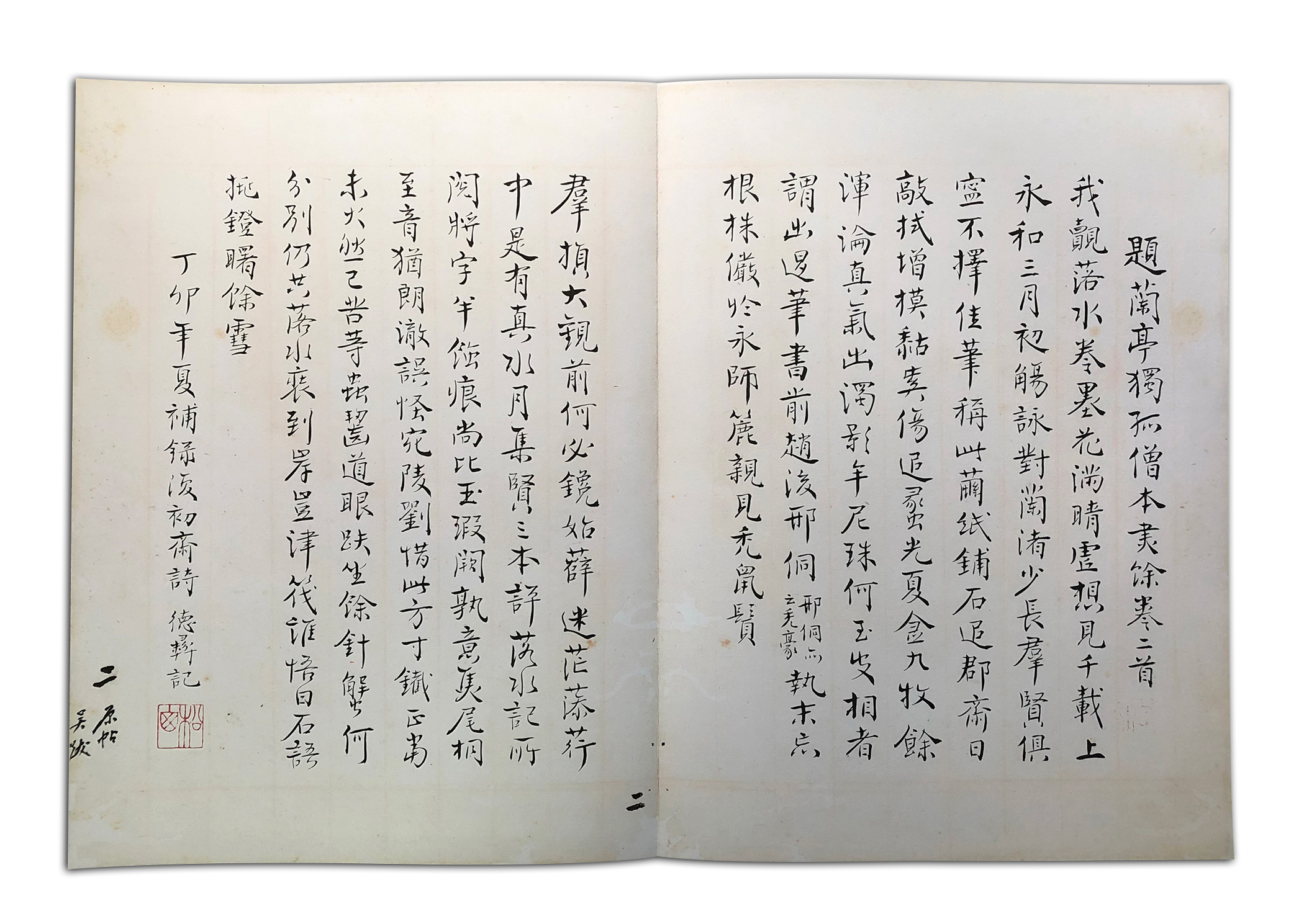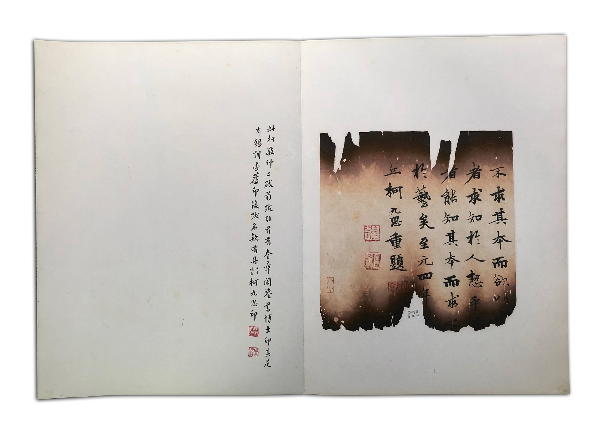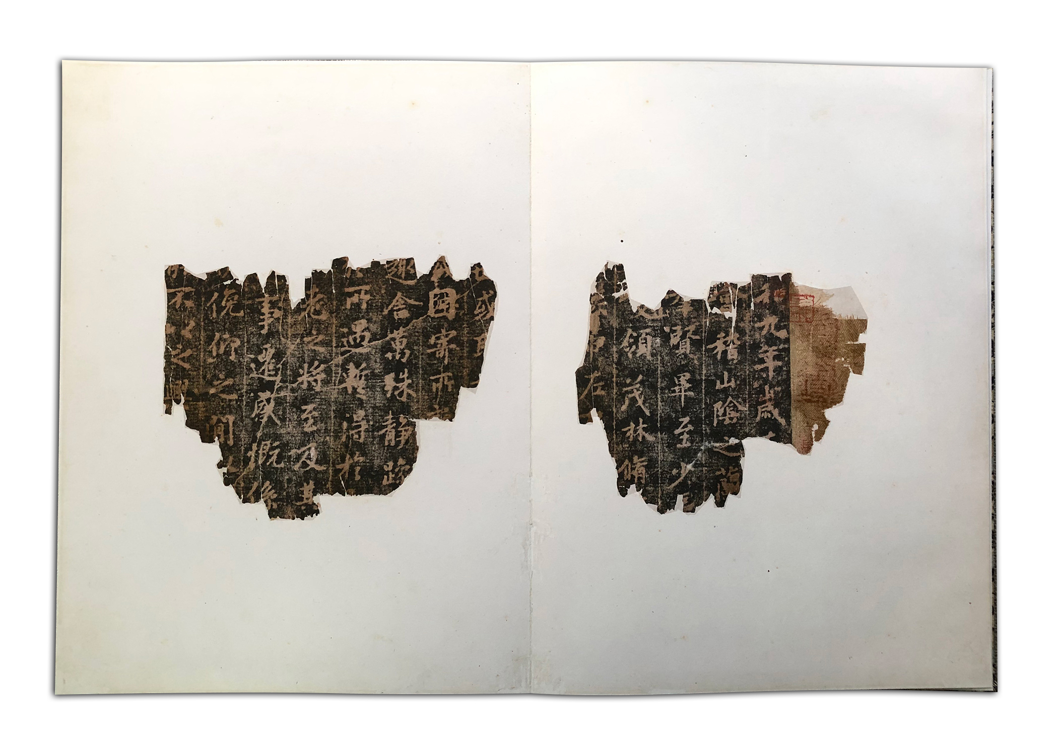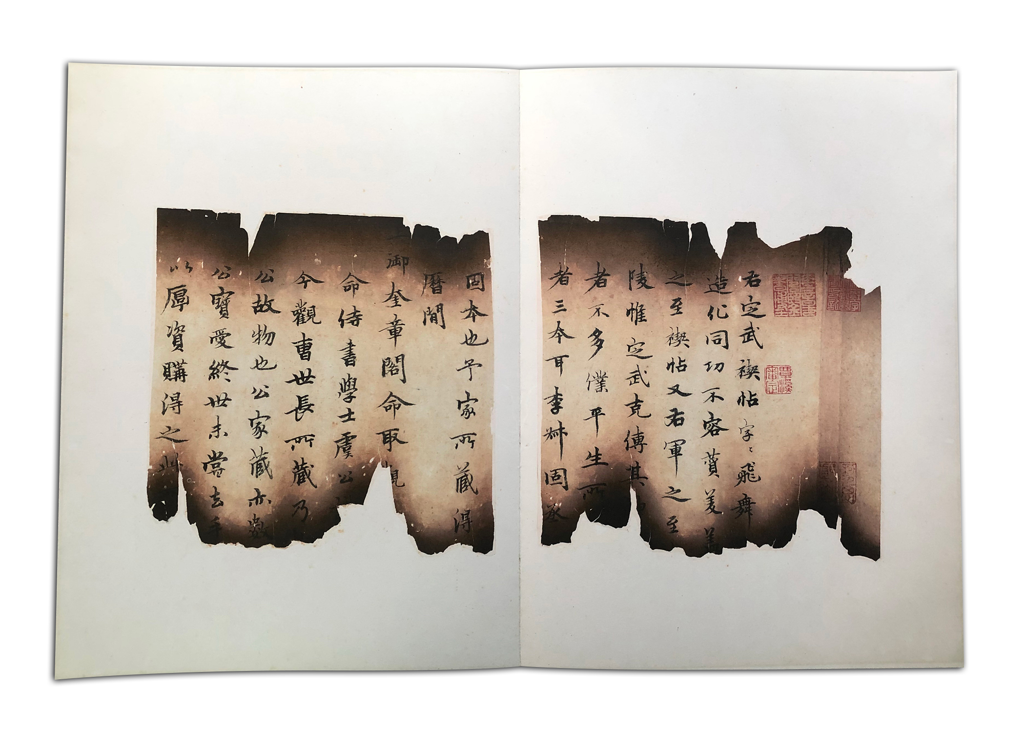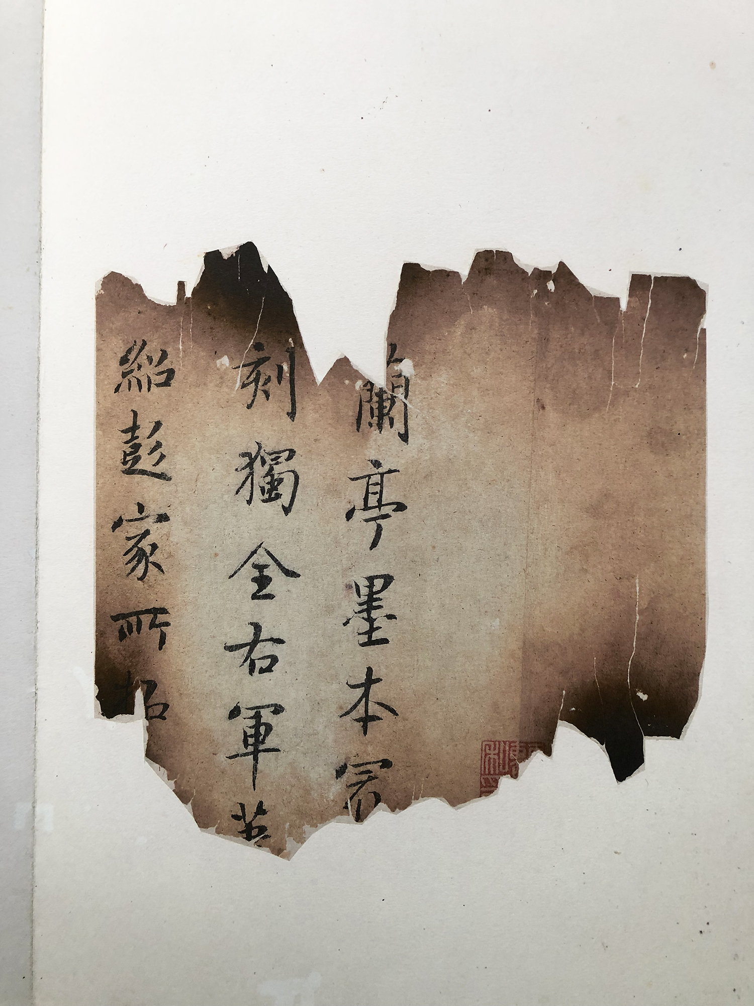 日本東京國立博物館收藏一册宋拓五字已損《定武蘭亭》,題爲“蘭亭獨孤本并跋殘字”。拓本連題跋共二十一開,册高三十三點二厘米,寬二十四點六厘米。這件獨孤本與今藏臺北“故宫博物院”的柯九思本,是目前傳世僅存的定武原石真本,在書史上赫赫有名,南宋末俞松撰《蘭亭續考》即已記載,清《大觀録》《墨緣彙觀》《平生壯觀》《式古堂書畫彙考》等均有著録,翁方綱《蘇米齋蘭亭考》辟有專章考述。