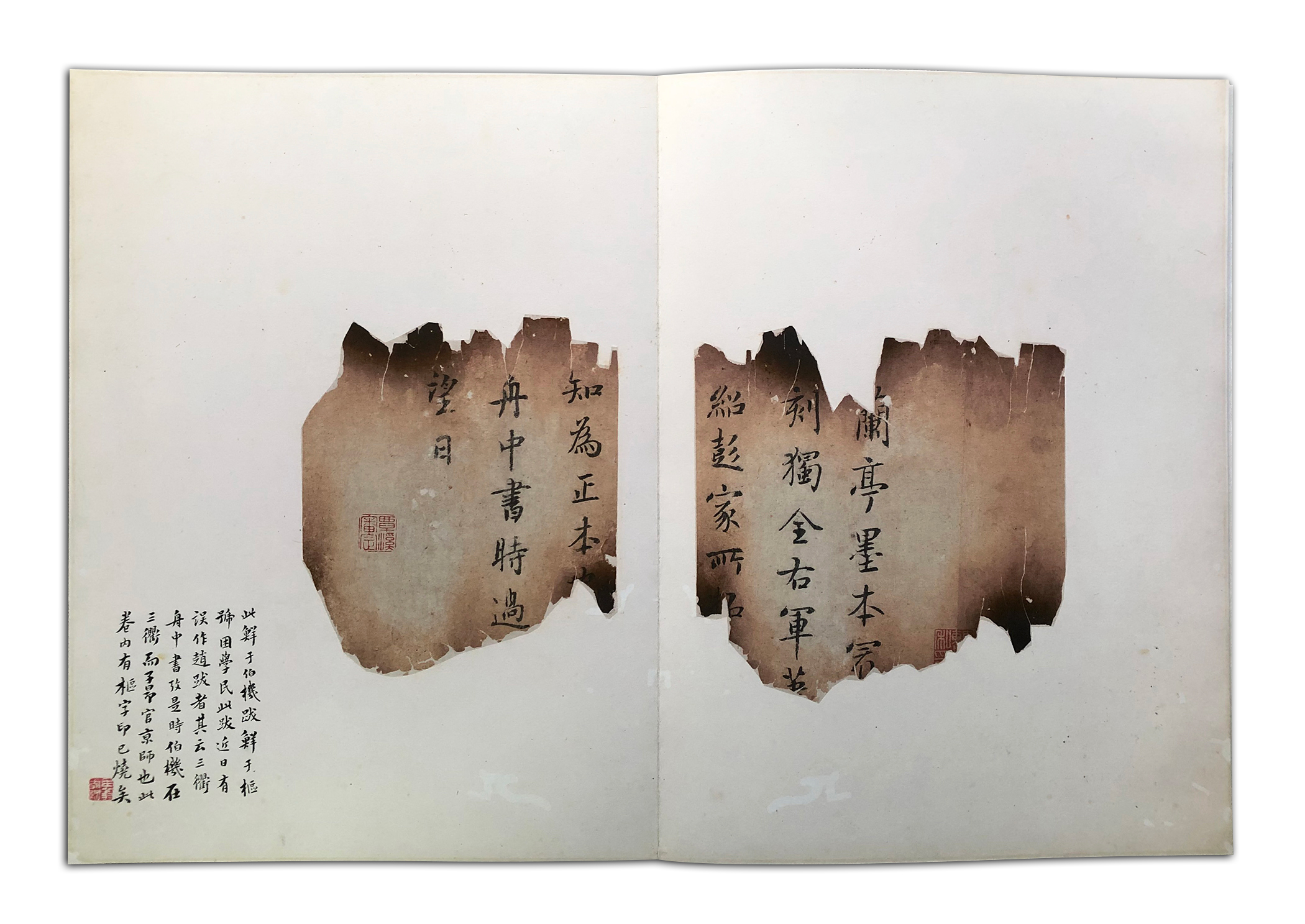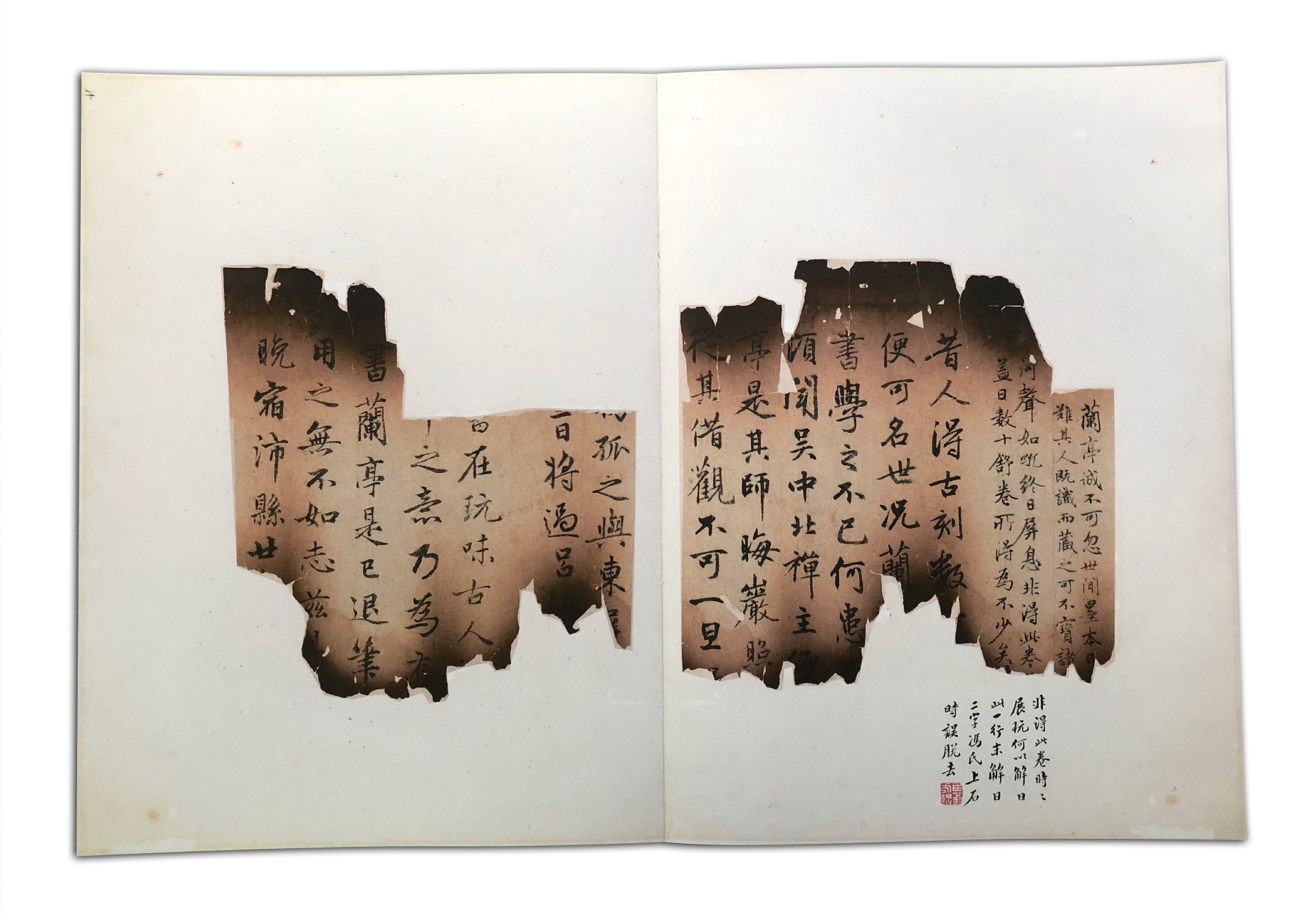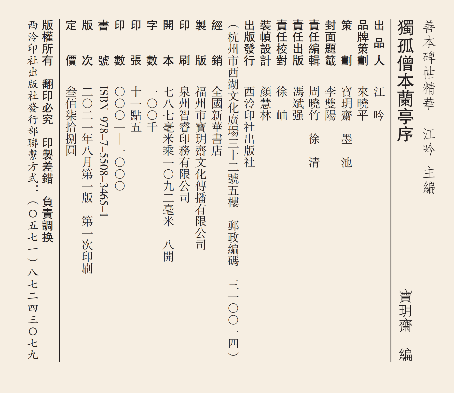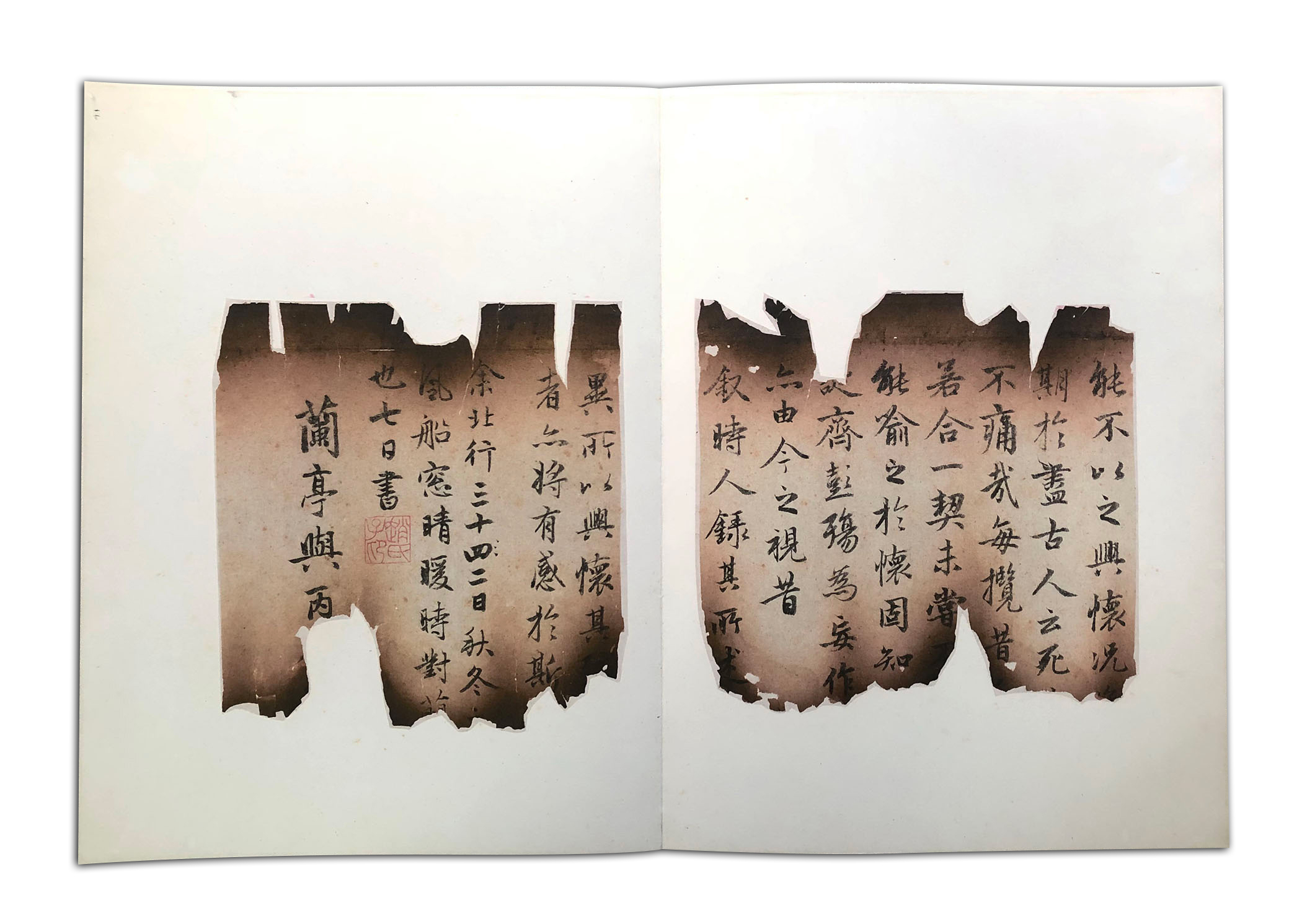 此墨迹本雖遭火燼,吉光片羽,尚可窺見真迹神采一斑。今福州寶玥齋獲東京國立博物館授權,由西泠印社出版社出版發行,首次以原尺寸全本彩色精印,另附滬上無塵書屋主人朱嘉榮先生珍藏涿拓《快雪堂法書》本趙孟頫《蘭亭》十三跋。劉氏鐵筆傳神,得存松雪手書全貌,以備觀者欣賞研習。