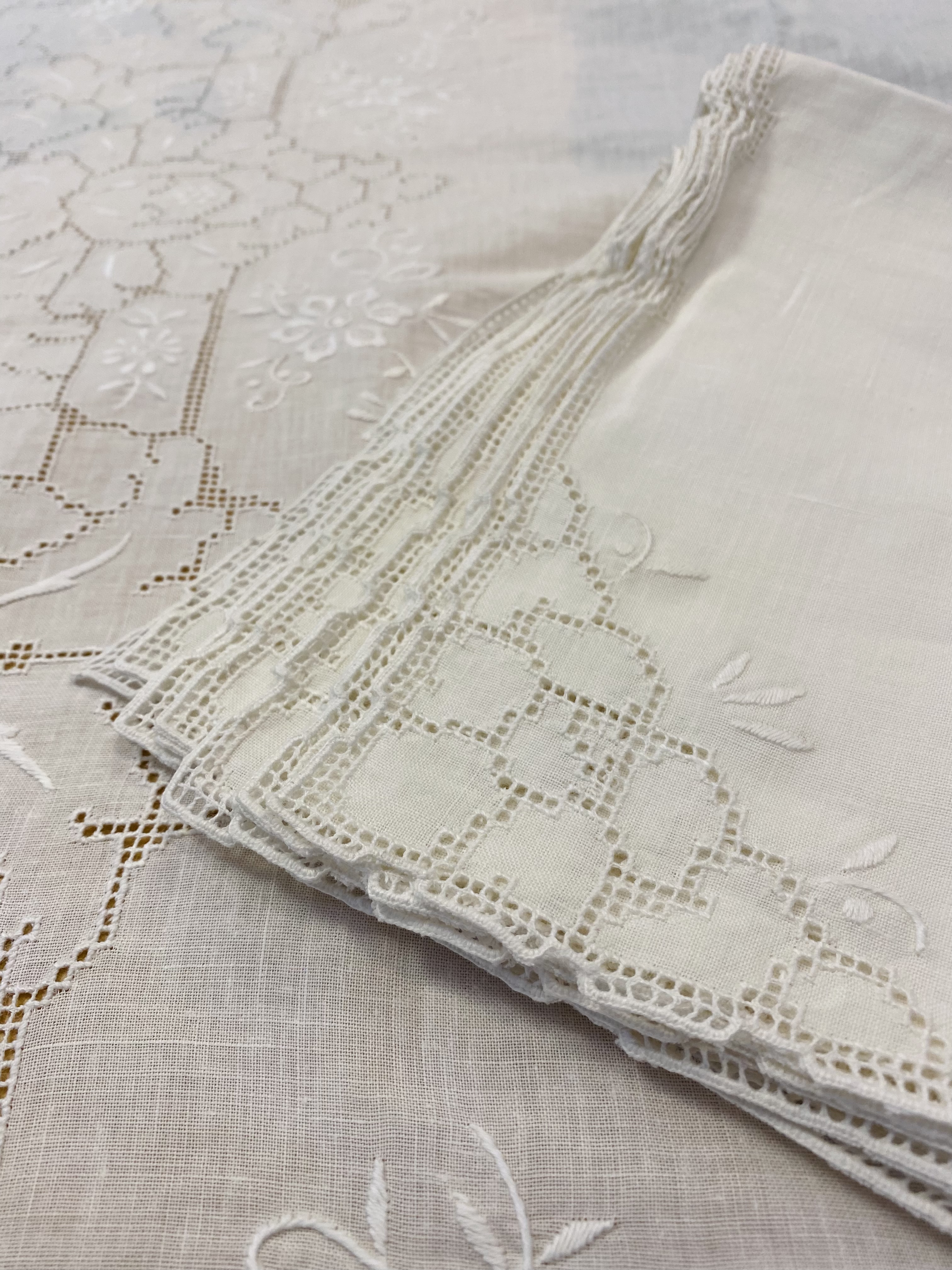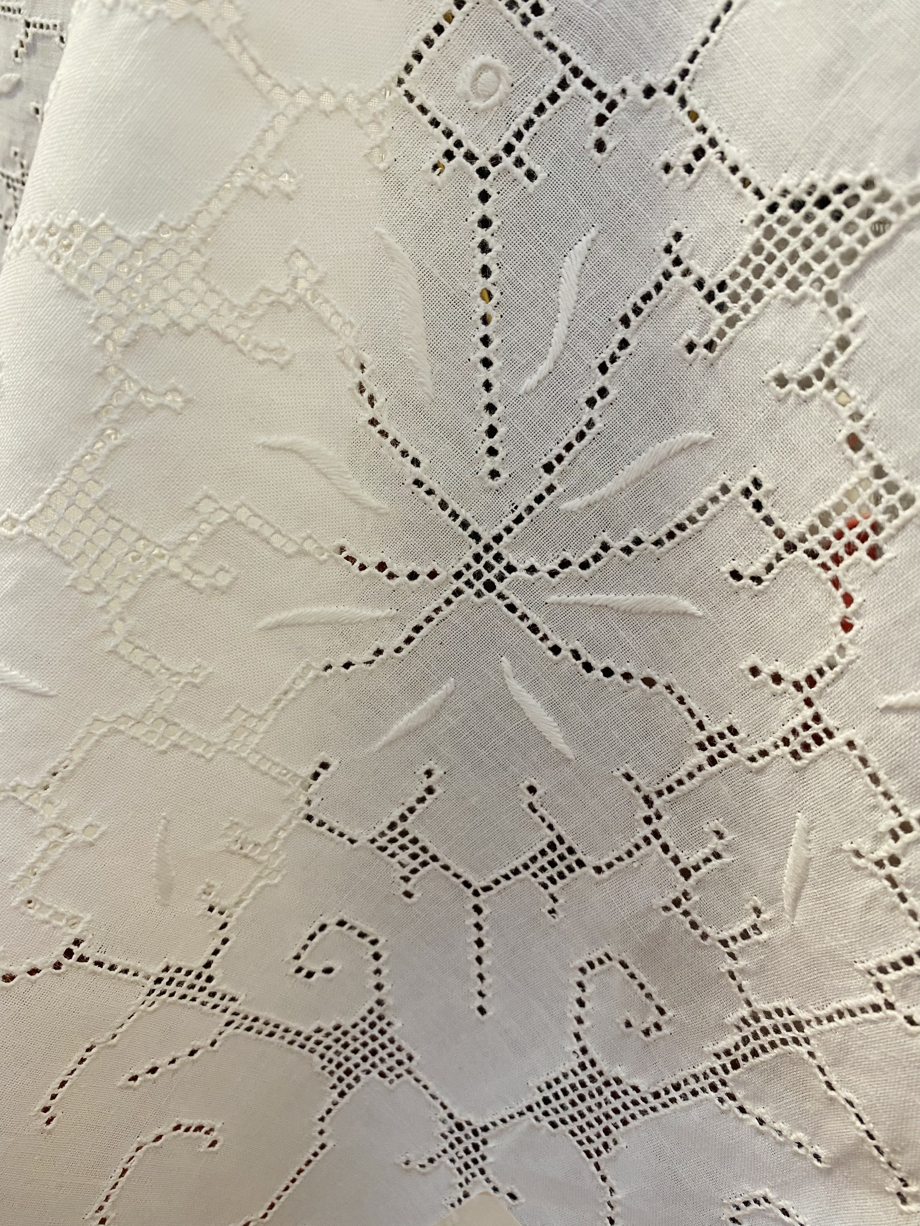 进口亚麻白色纯手工扎目抽丝桌布。出口创汇时期外贸库存。