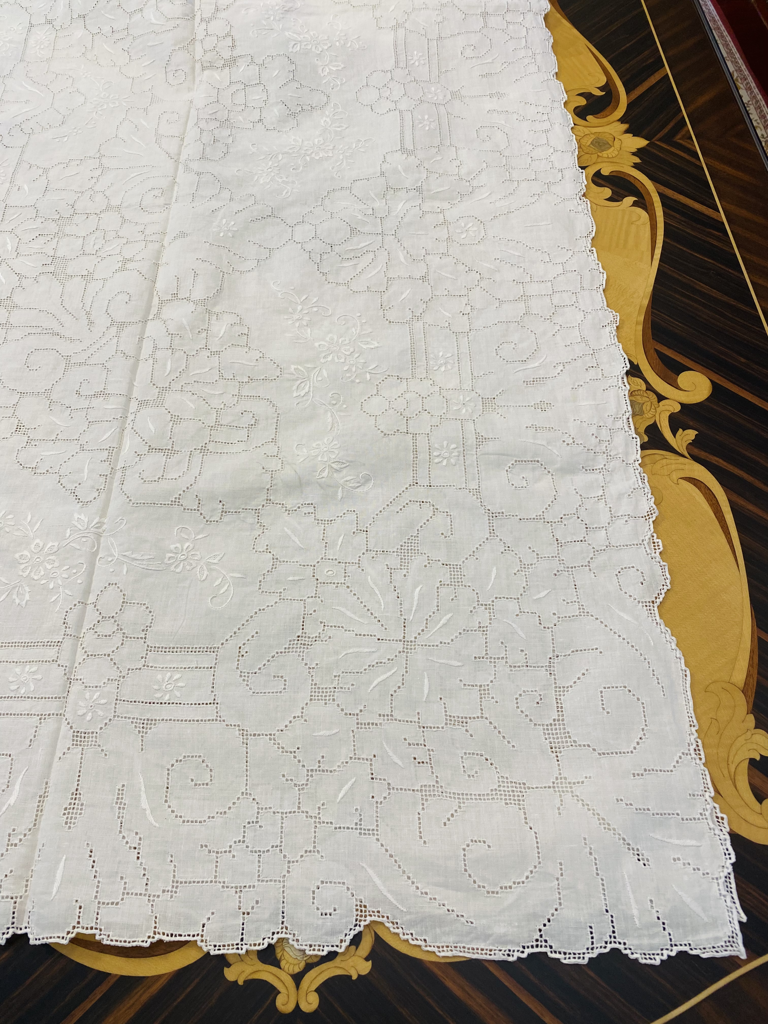 顶级小孔扎目抽丝工艺,花稿大气优雅。尺寸180✖️270厘米,送12条餐巾价格1590元,仅1条(非偏远地区包邮)