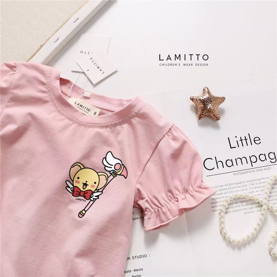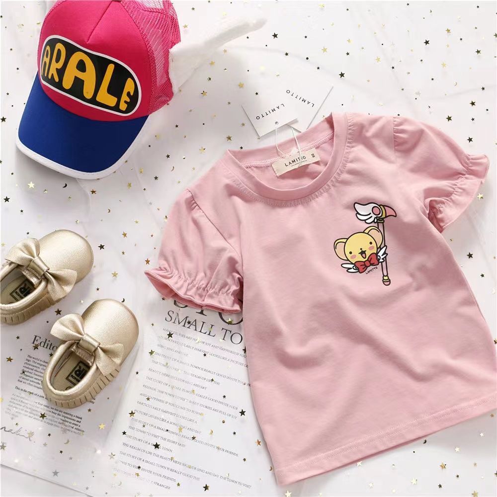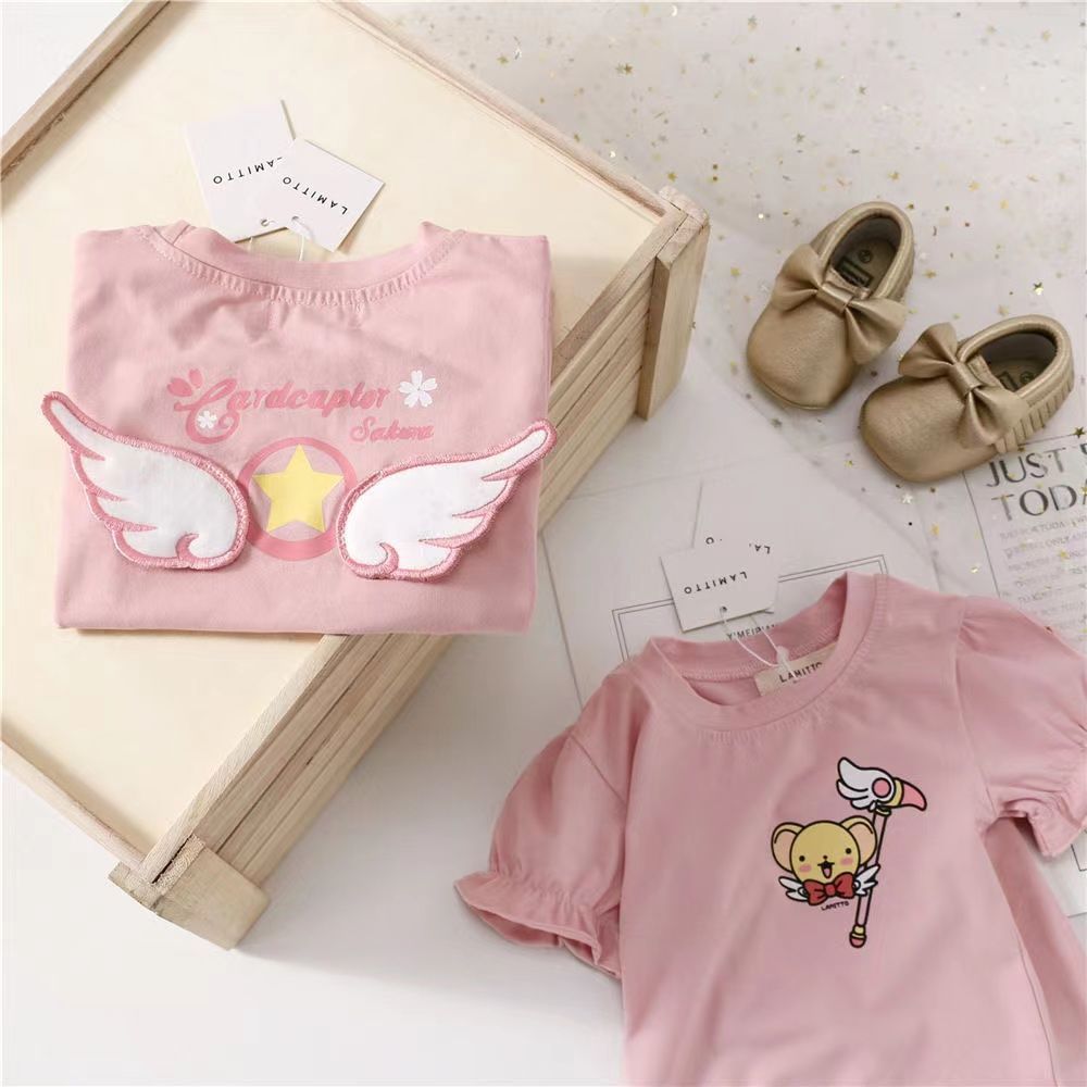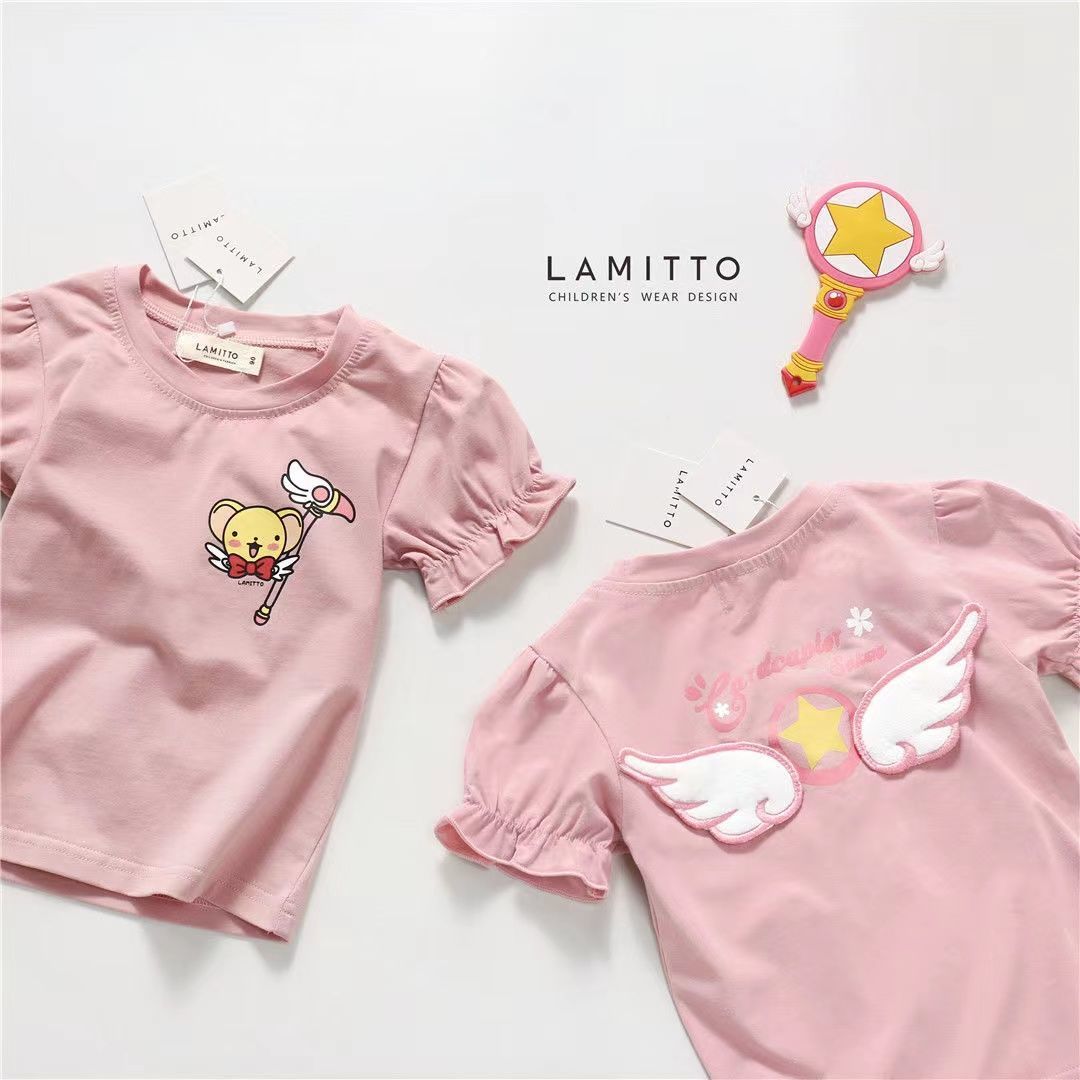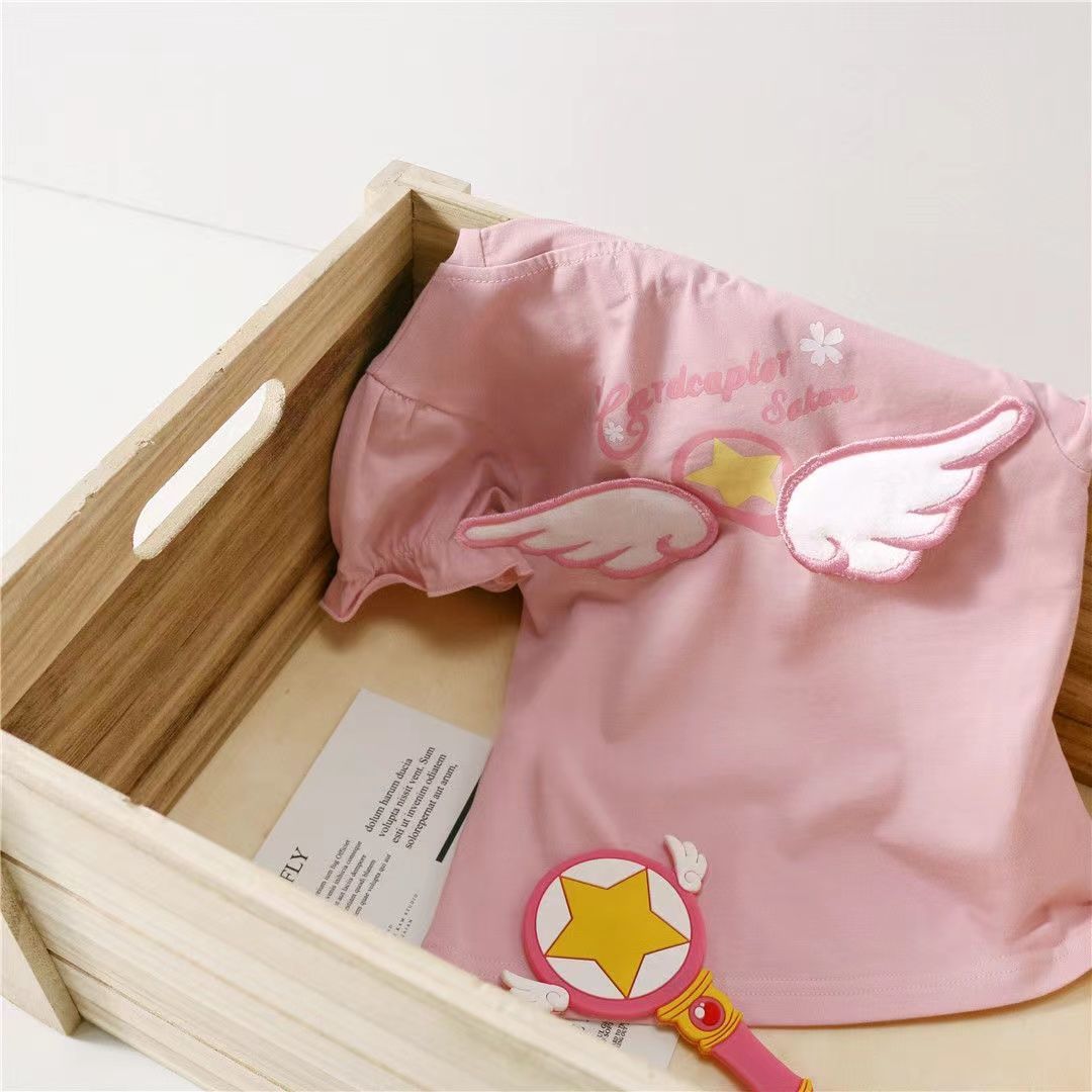 【立体天使翅膀,美少女T恤!】女童洋气短袖T恤夏装新款时尚百搭,卡通上衣中小童儿童宝宝圆领潮-lm!-ry